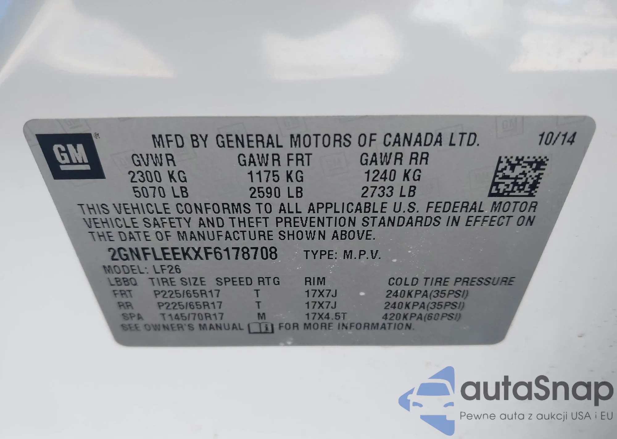 VIN: 2GNFLEEKXF6178708