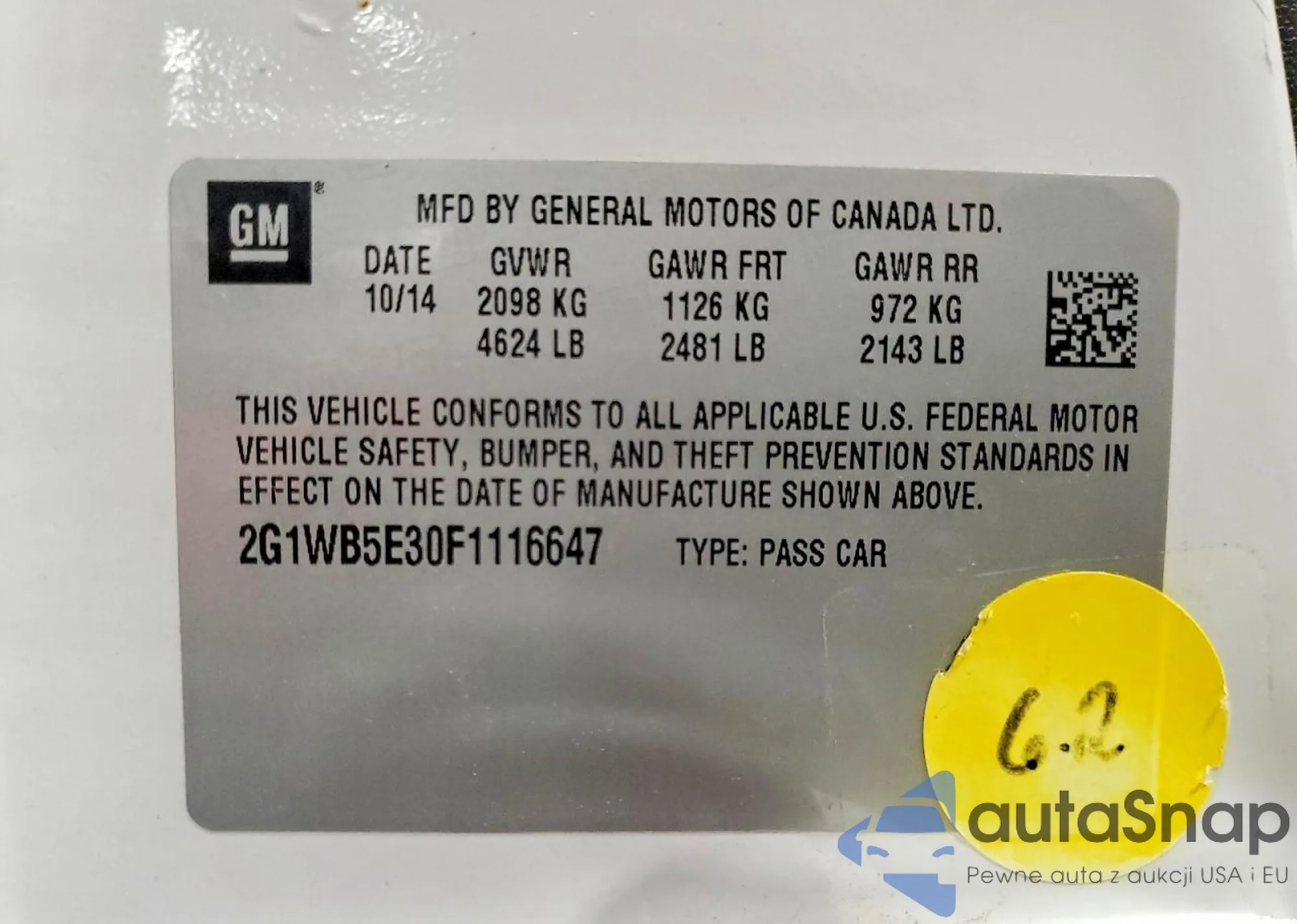 VIN: 2G1WB5E30F1116647