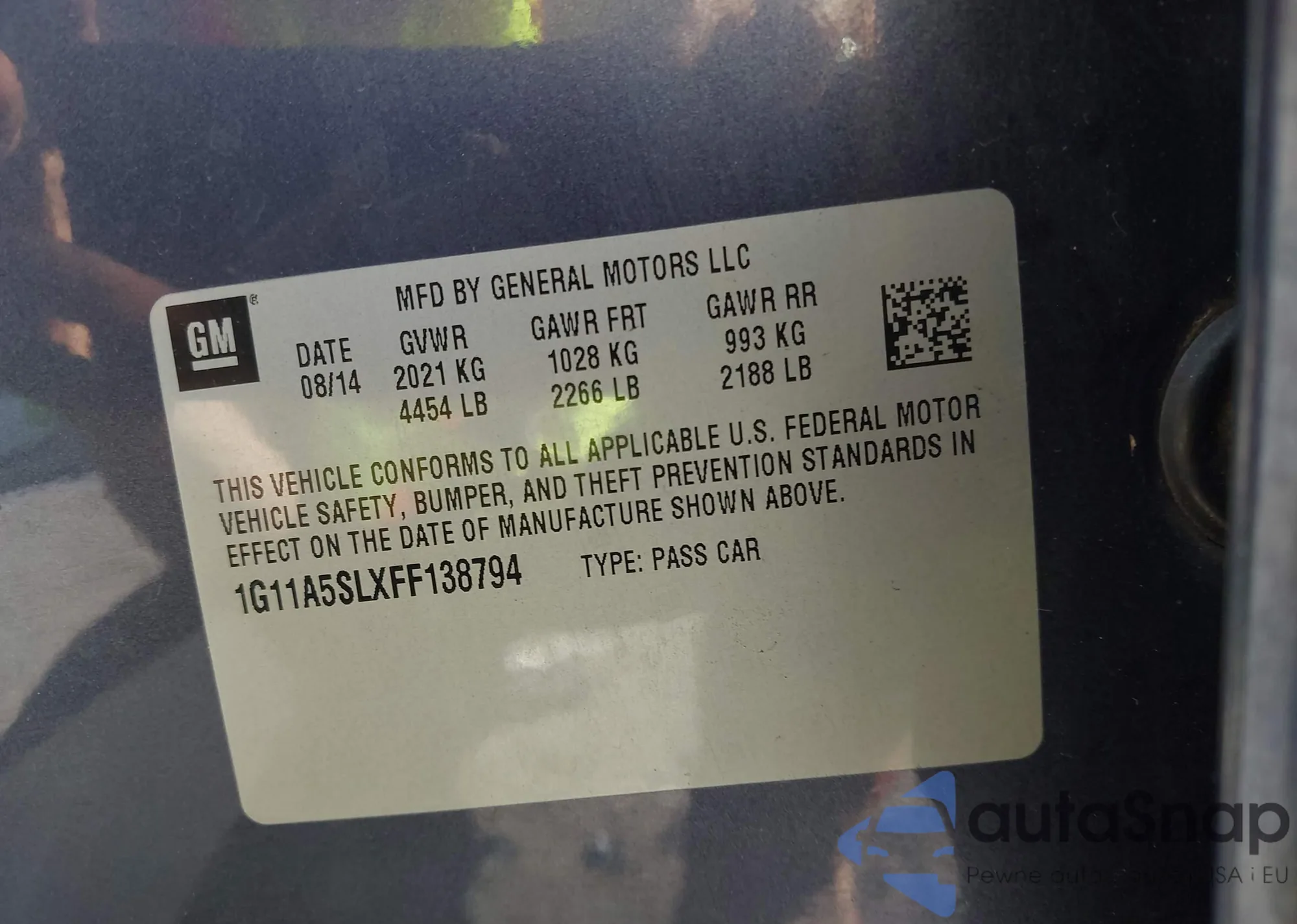 VIN: 1G11A5SLXFF138794