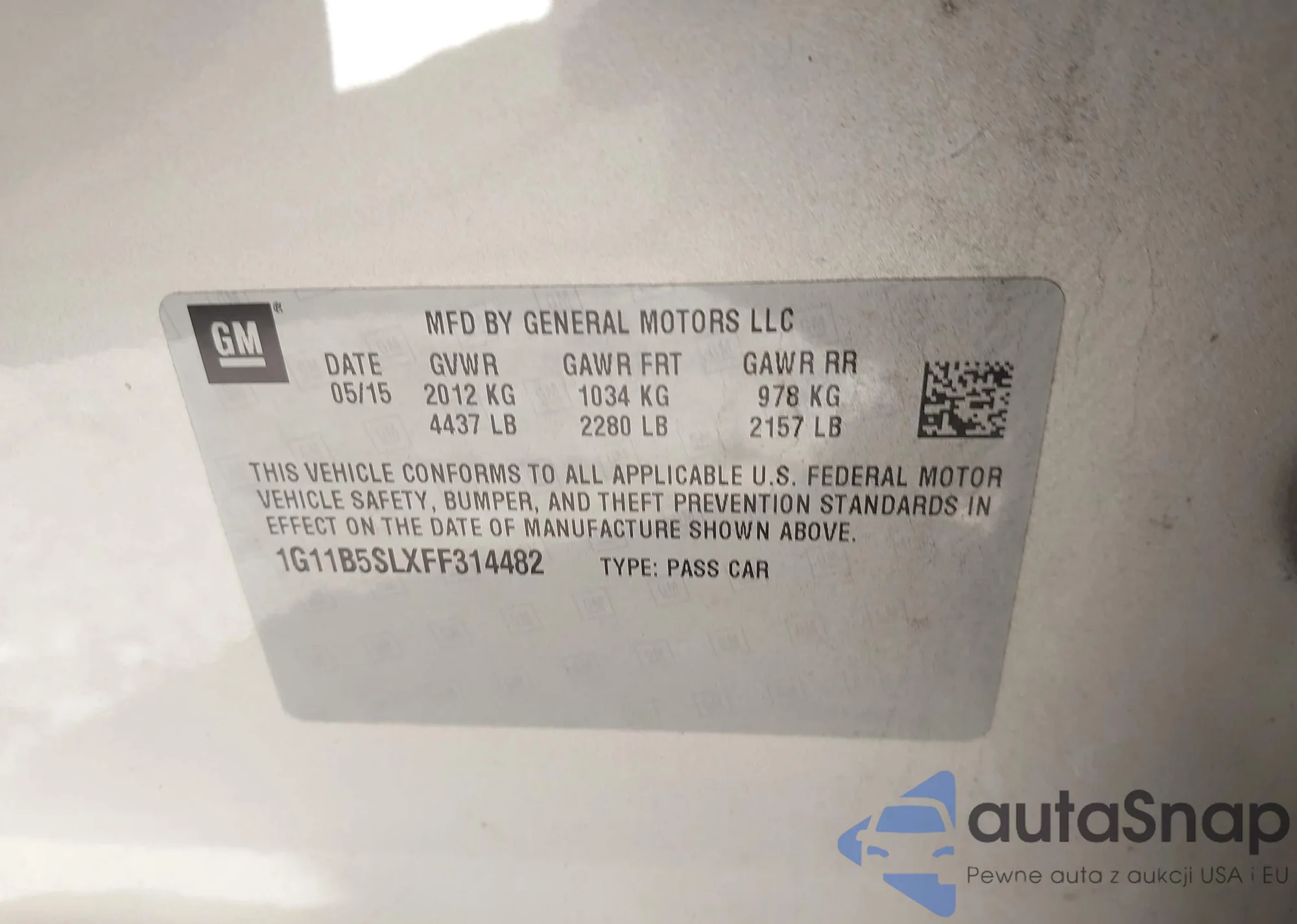 Samochód Chevrolet Malibu 2015 (VIN 1G11B5SLXFF314482) nie był wcześniej licytowany. Dokumenty są czyste, przebieg odpowiada lub jest niższy niż średnia rynku. Sprzedaje go firma ubezpieczeniowa – polecamy zakup. Dostawa do portu zajmie ok. 6–8 tygodni.