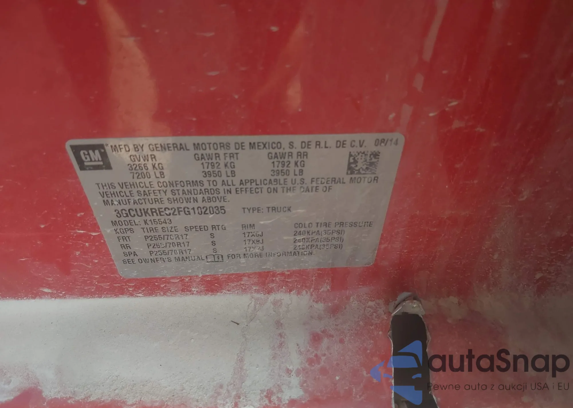 VIN: 3GCUKREC2FG102035