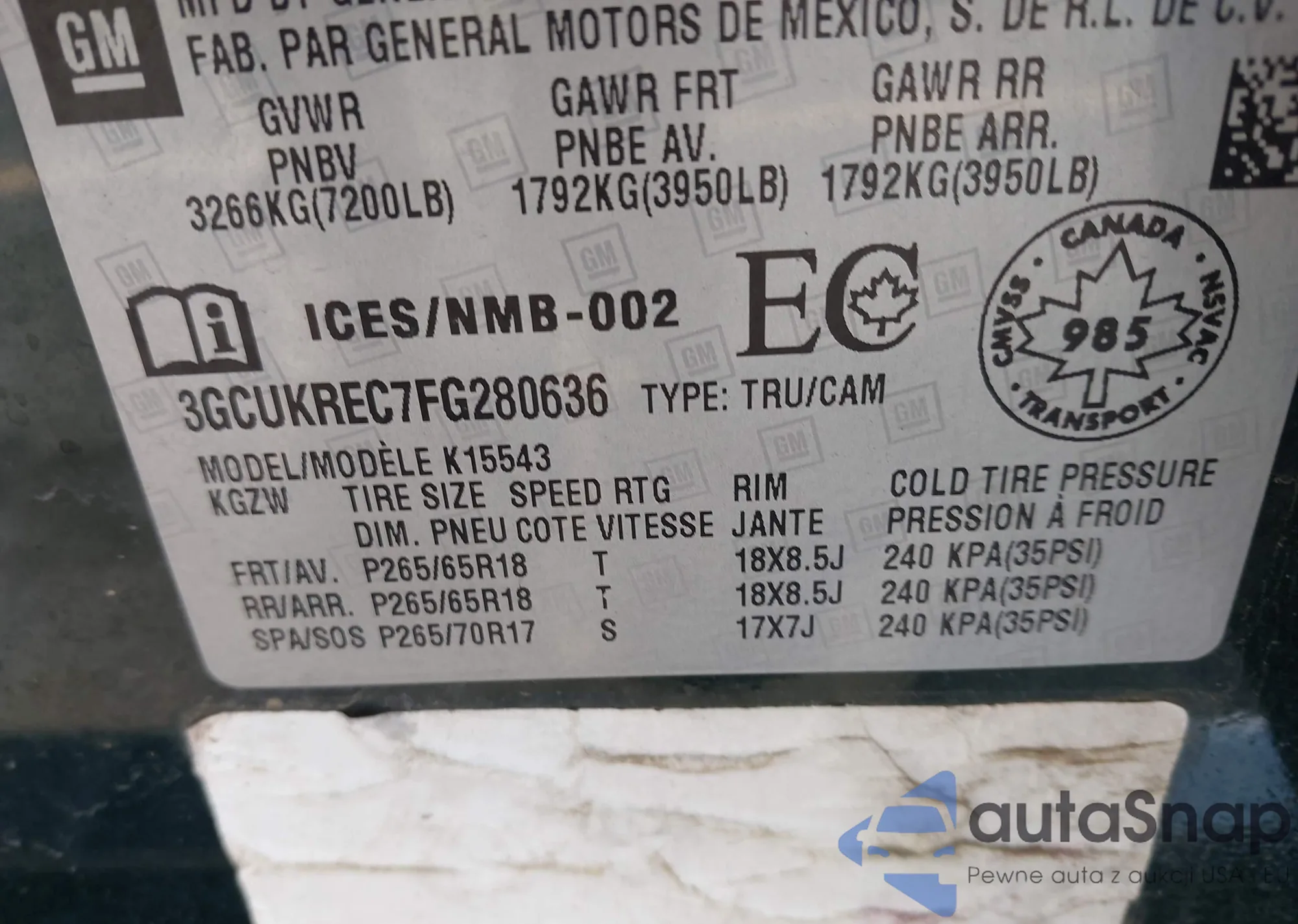 VIN: 3GCUKREC7FG280636