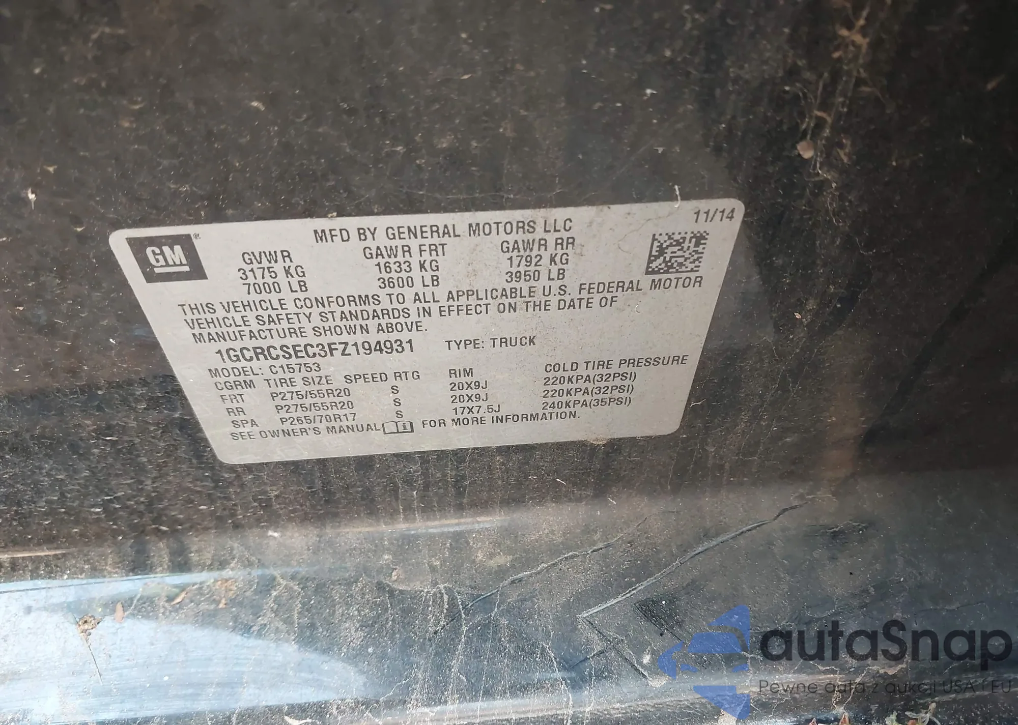 VIN: 1GCRCSEC3FZ194931
