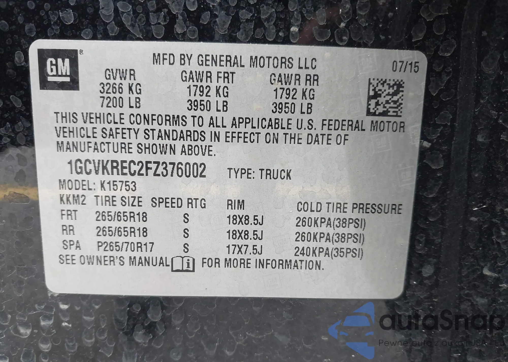 VIN: 1GCVKREC2FZ376002