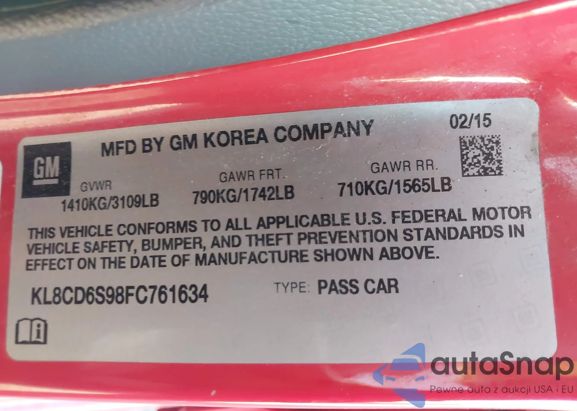 Samochód Chevrolet Spark 2015 (VIN KL8CD6S98FC761634) nie był wcześniej licytowany. Dokumenty są czyste, przebieg odpowiada lub jest niższy niż średnia rynku. Sprzedaje go firma ubezpieczeniowa – polecamy zakup. Dostawa do portu zajmie ok. 6–8 tygodni.