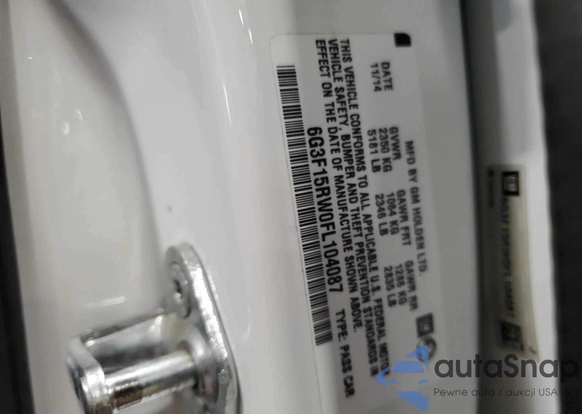 VIN: 6G3F15RW0FL104087