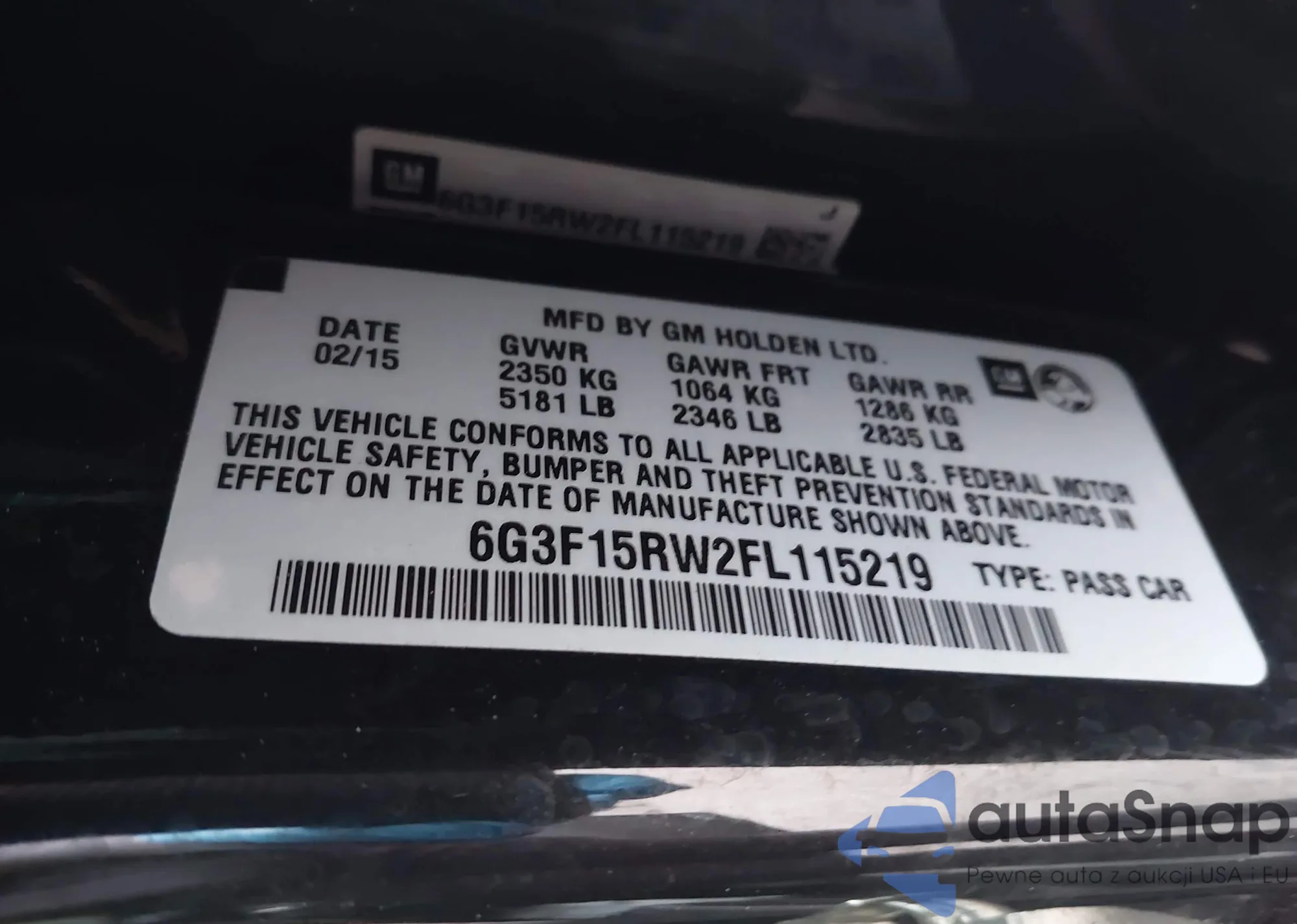 VIN: 6G3F15RW2FL115219