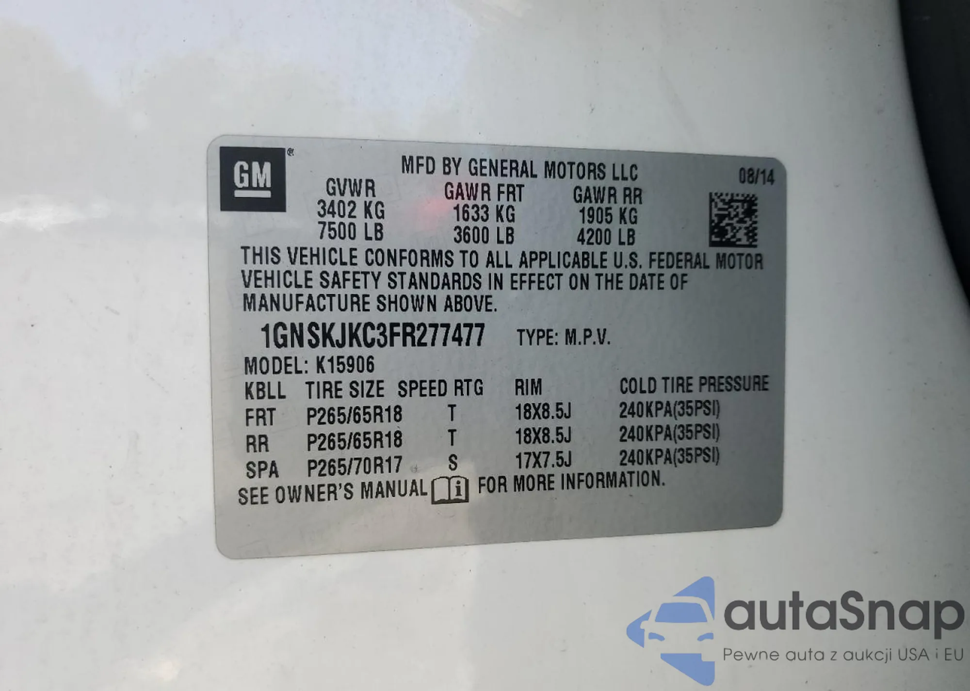 VIN: 1GNSKJKC3FR277477