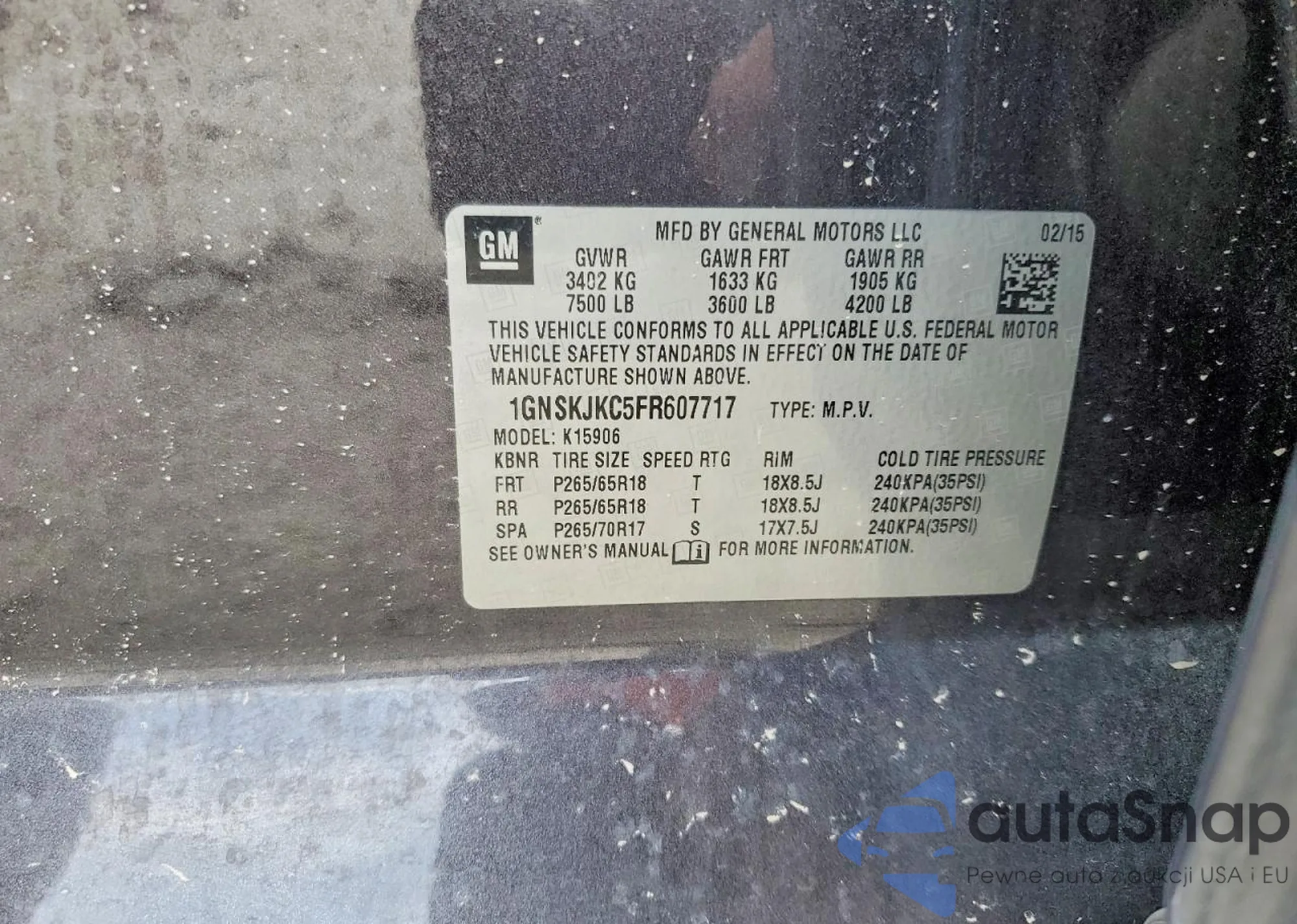 VIN: 1GNSKJKC5FR607717