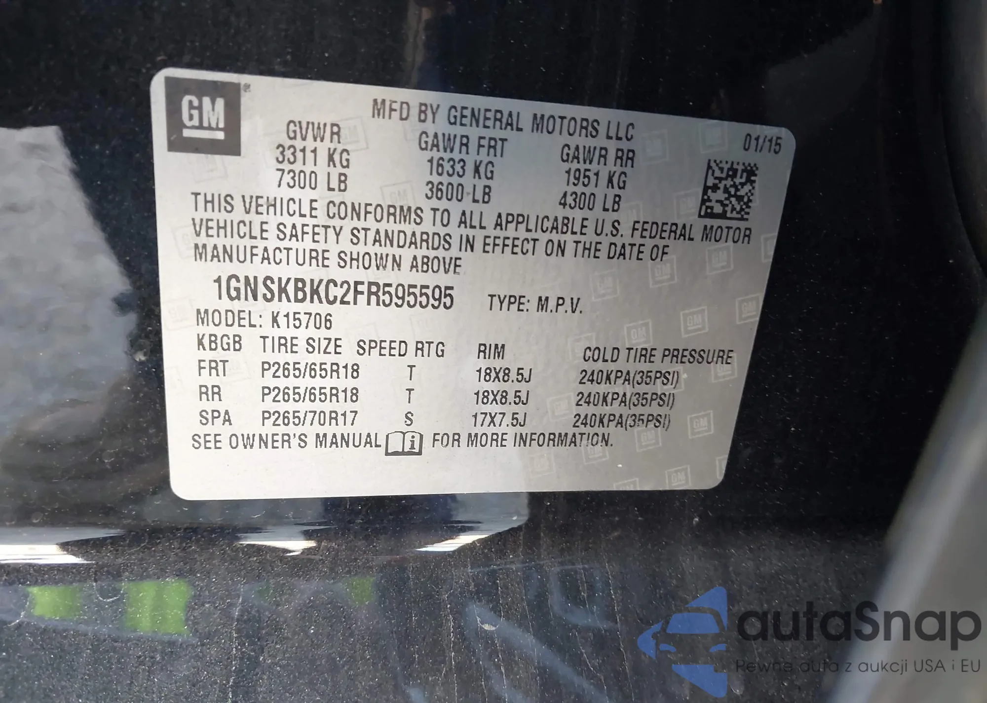 VIN: 1GNSKBKC2FR595595