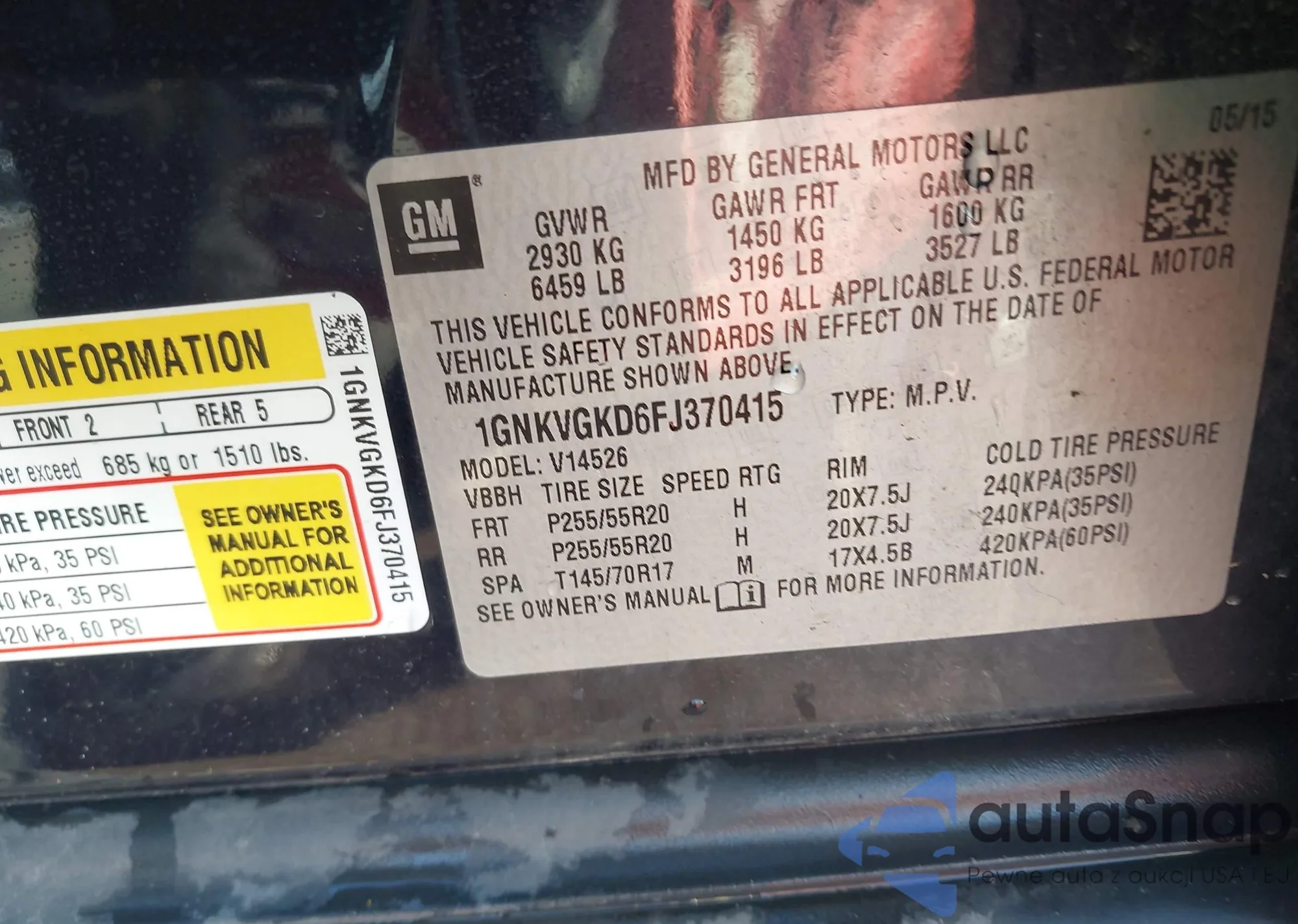 • VIN: 1GNKVGKD6FJ370415