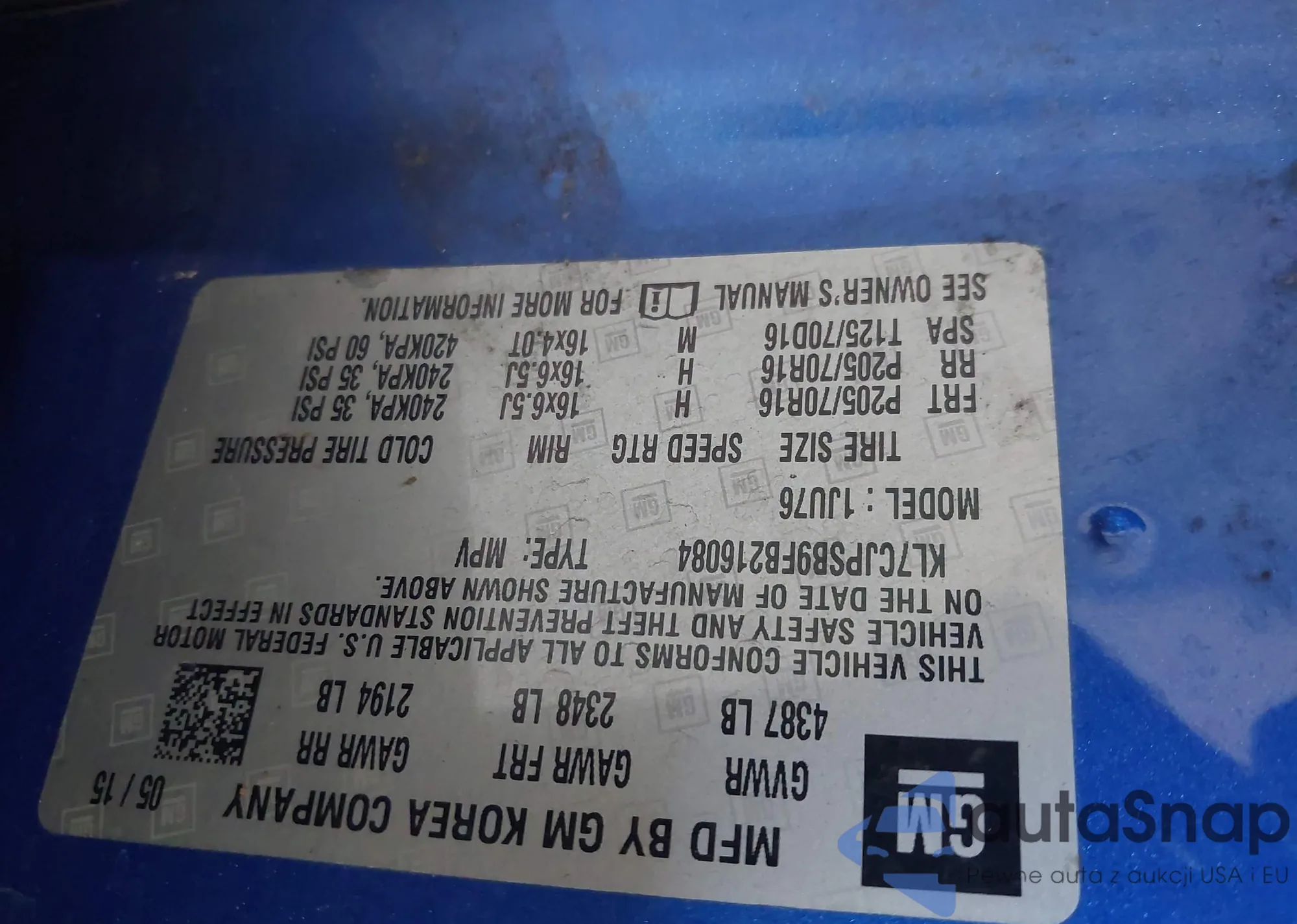 VIN: KL7CJPSB9FB216084