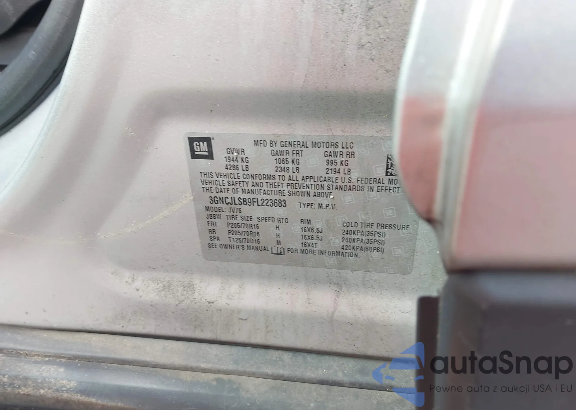 VIN: 3GNCJLSB9FL223683