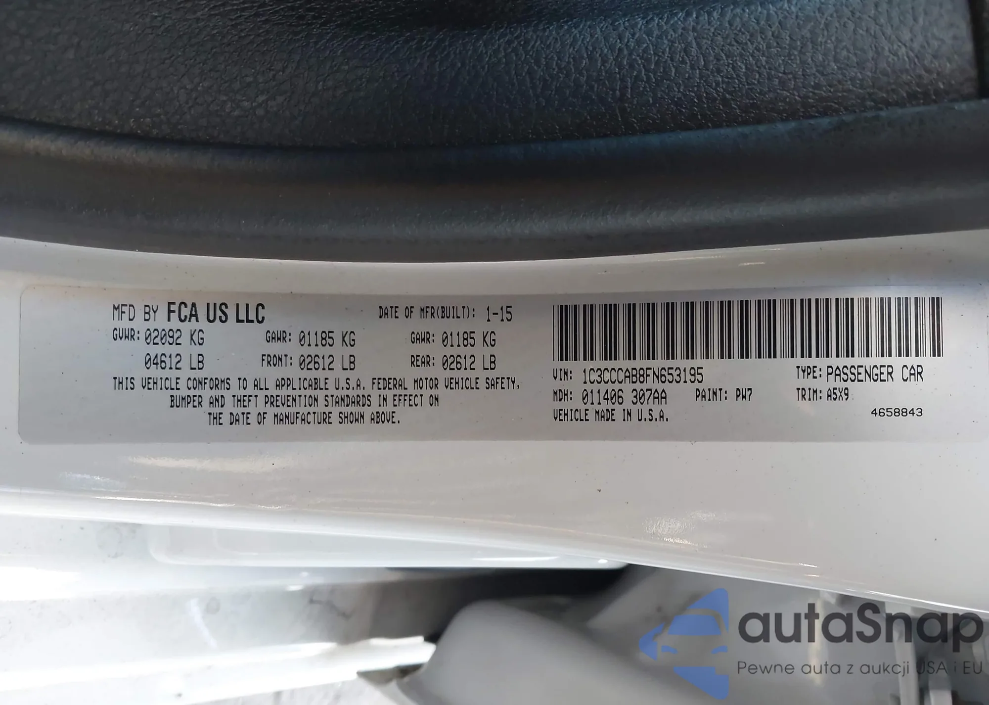 Samochód Chrysler 200 2015 (VIN 1C3CCCAB8FN653195) nie był wcześniej licytowany. Dokumenty są czyste, przebieg odpowiada lub jest niższy niż średnia rynku. Sprzedaje go firma ubezpieczeniowa – polecamy zakup. Dostawa do portu zajmie ok. 6–8 tygodni.