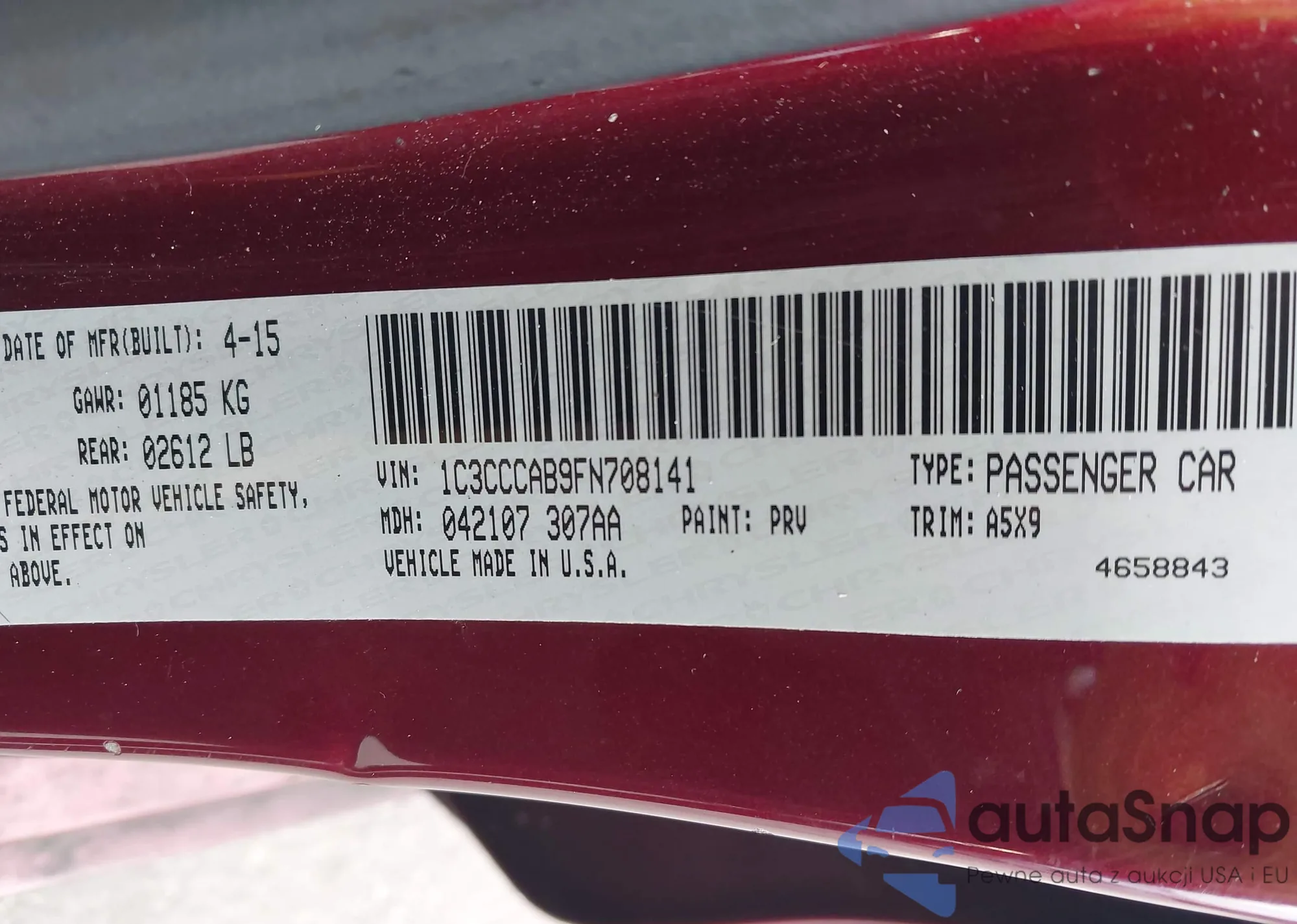 • VIN: 1C3CCCAB9FN708141