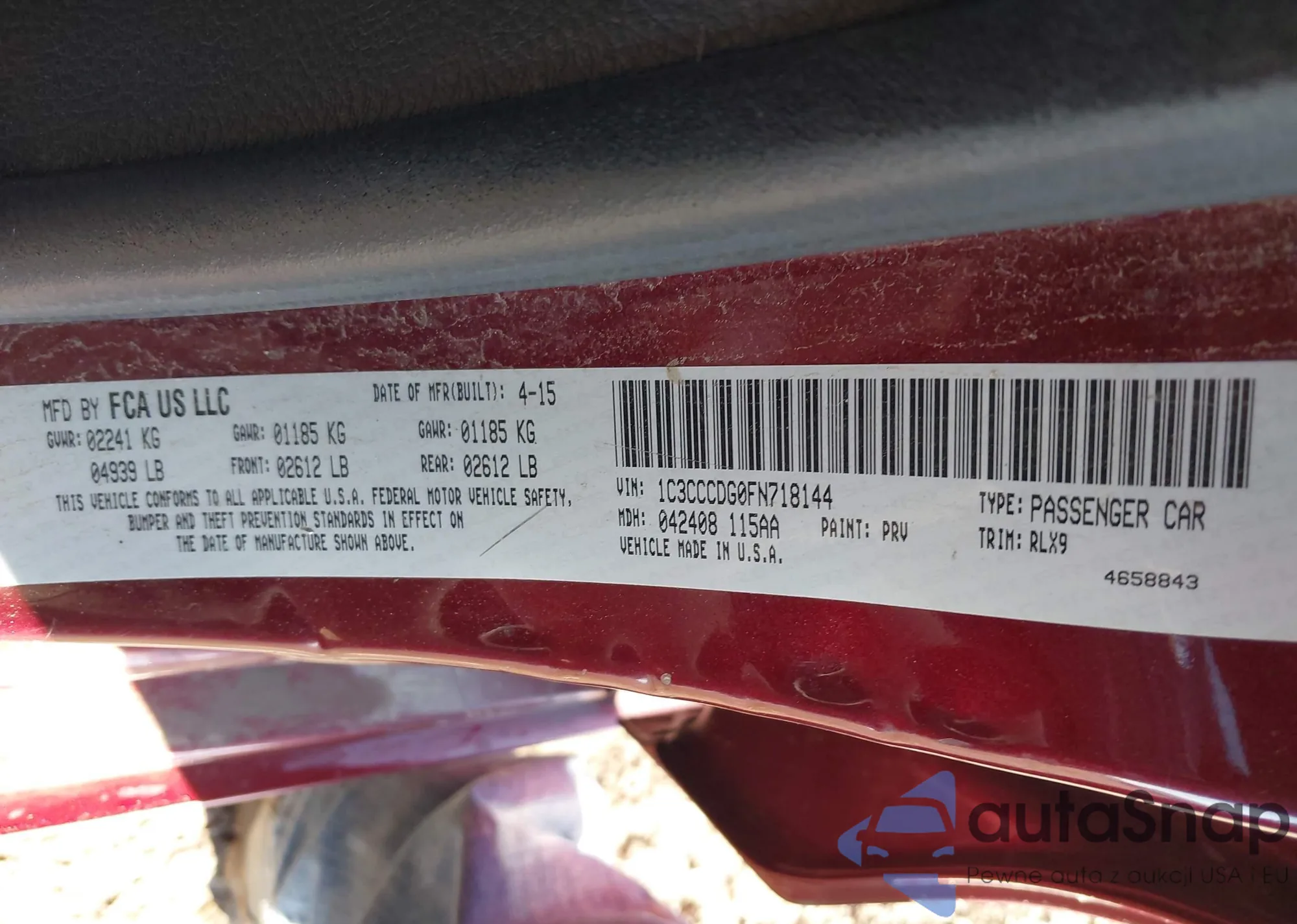 Samochód Chrysler 200 2015 (VIN 1C3CCCDG0FN718144) nie był wcześniej licytowany. Dokumenty są czyste, przebieg odpowiada lub jest niższy niż średnia rynku. Sprzedaje go firma ubezpieczeniowa – polecamy zakup. Dostawa do portu zajmie ok. 6–8 tygodni.
