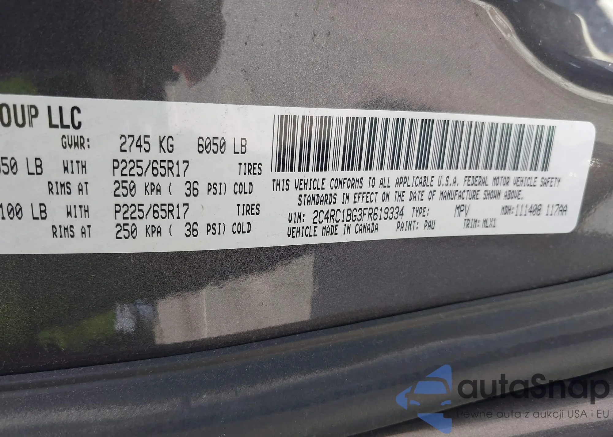 VIN: 2C4RC1BG3FR619334