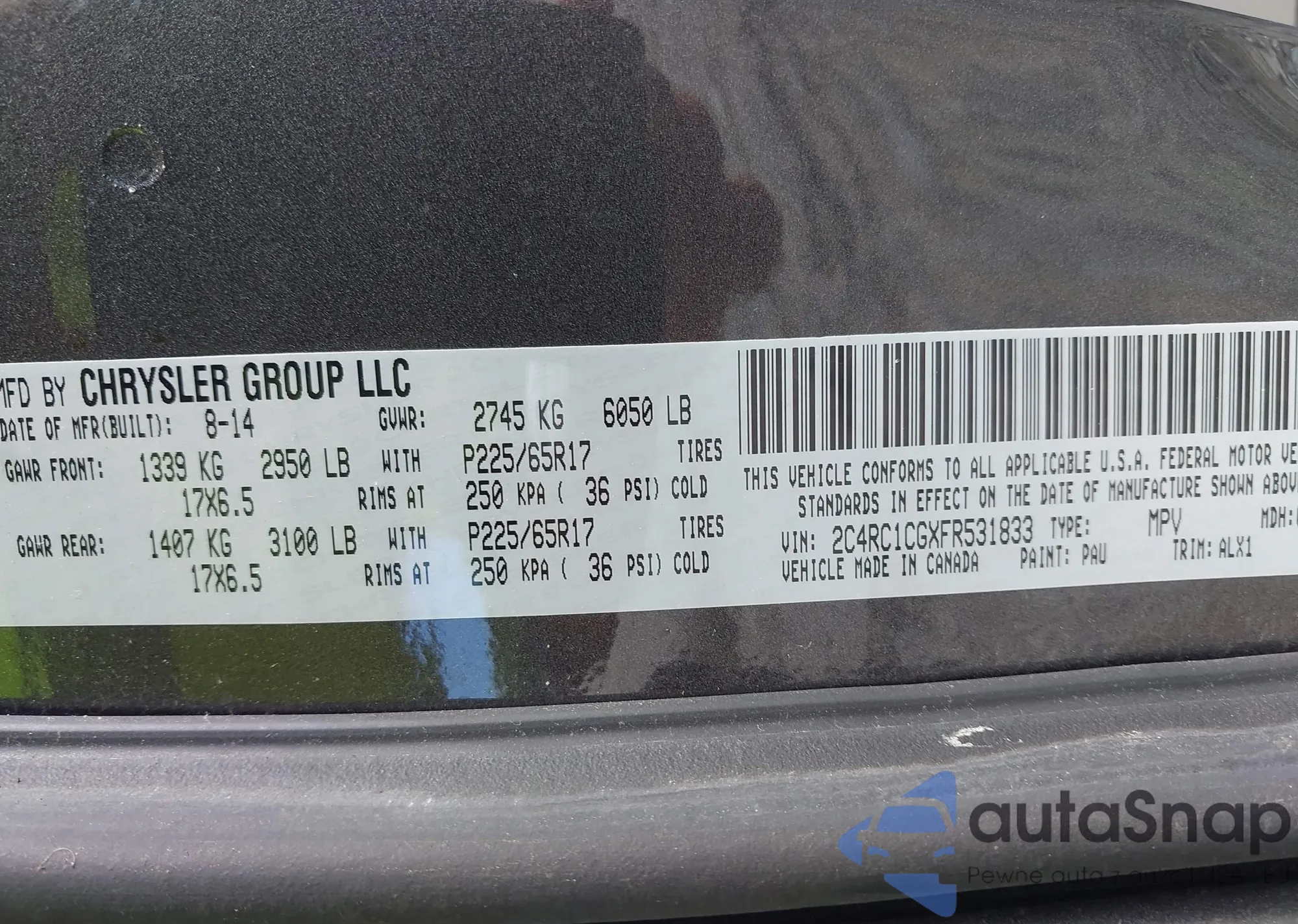 VIN: 2C4RC1CGXFR531833