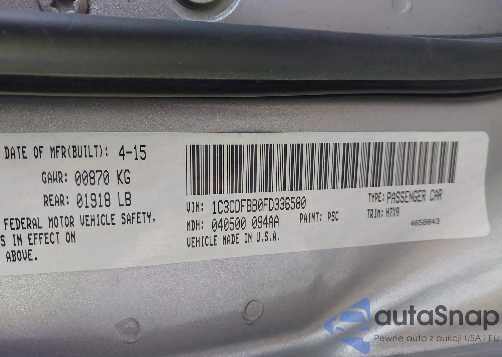 VIN: 1C3CDFBB0FD336580