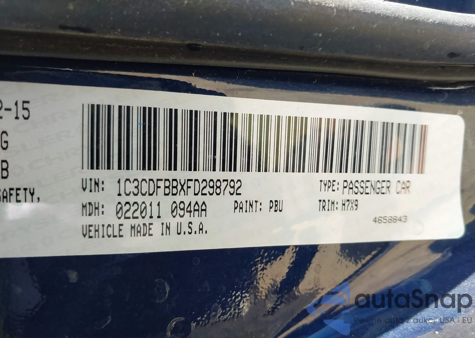 VIN: 1C3CDFBBXFD298792