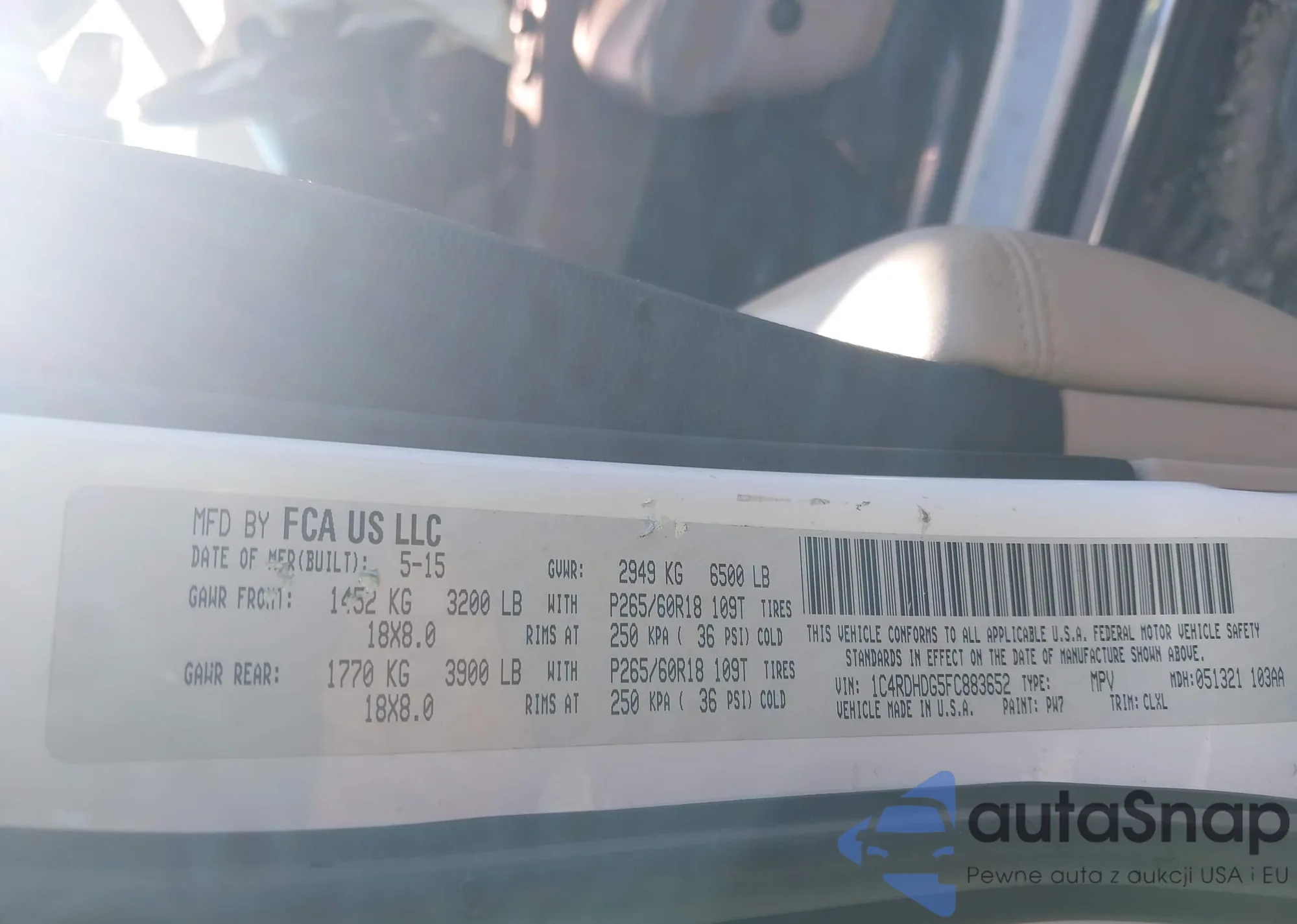 VIN: 1C4RDHDG5FC883652