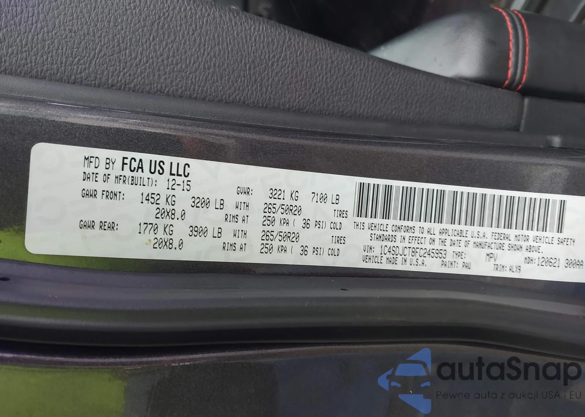 Samochód Dodge Durango 2015 (VIN 1C4SDJCT8FC245953) nie był wcześniej licytowany. Dokumenty są czyste, przebieg odpowiada lub jest niższy niż średnia rynku. Sprzedaje go firma ubezpieczeniowa – polecamy zakup. Dostawa do portu zajmie ok. 6–8 tygodni.