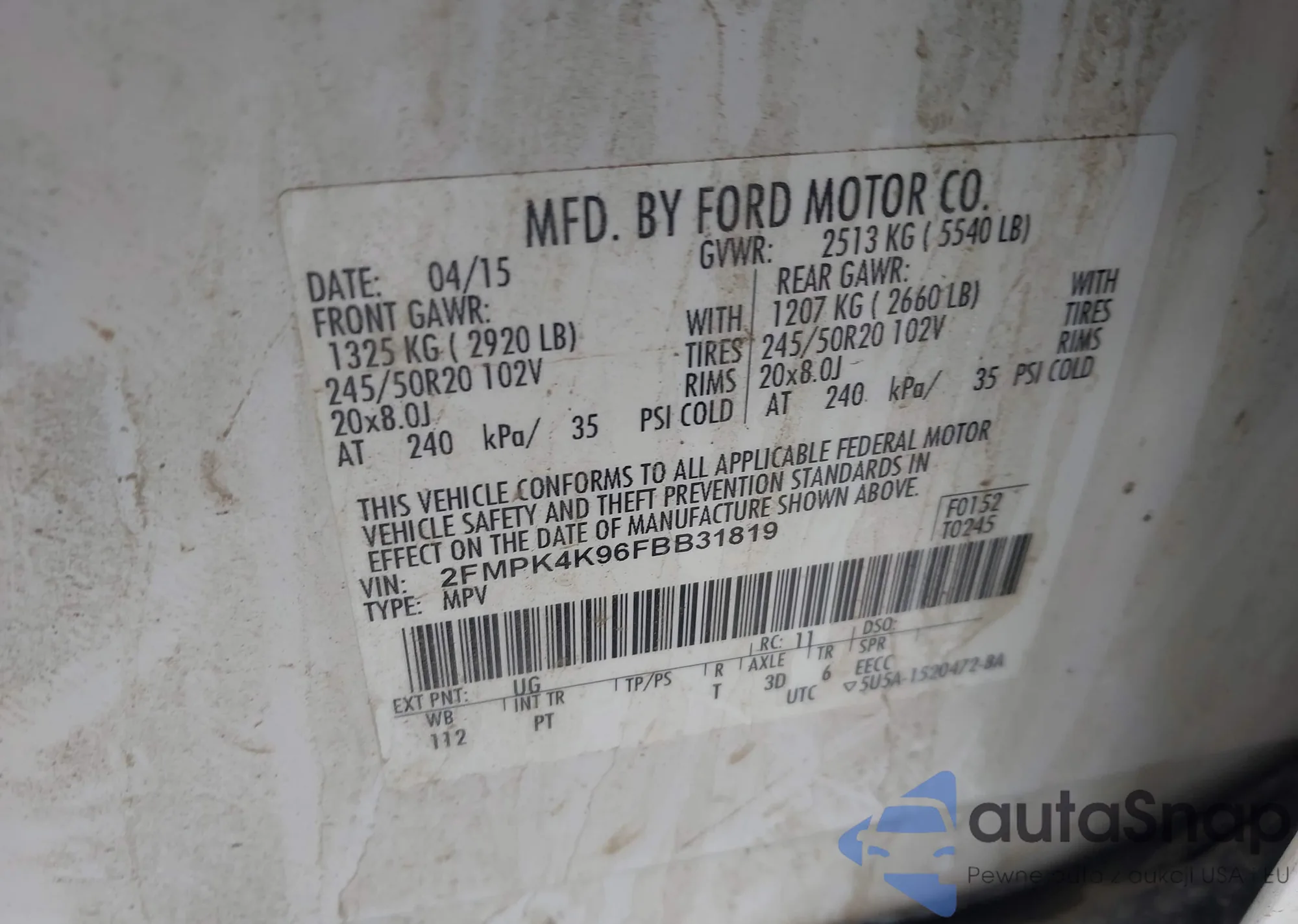 VIN: 2FMPK4K96FBB31819