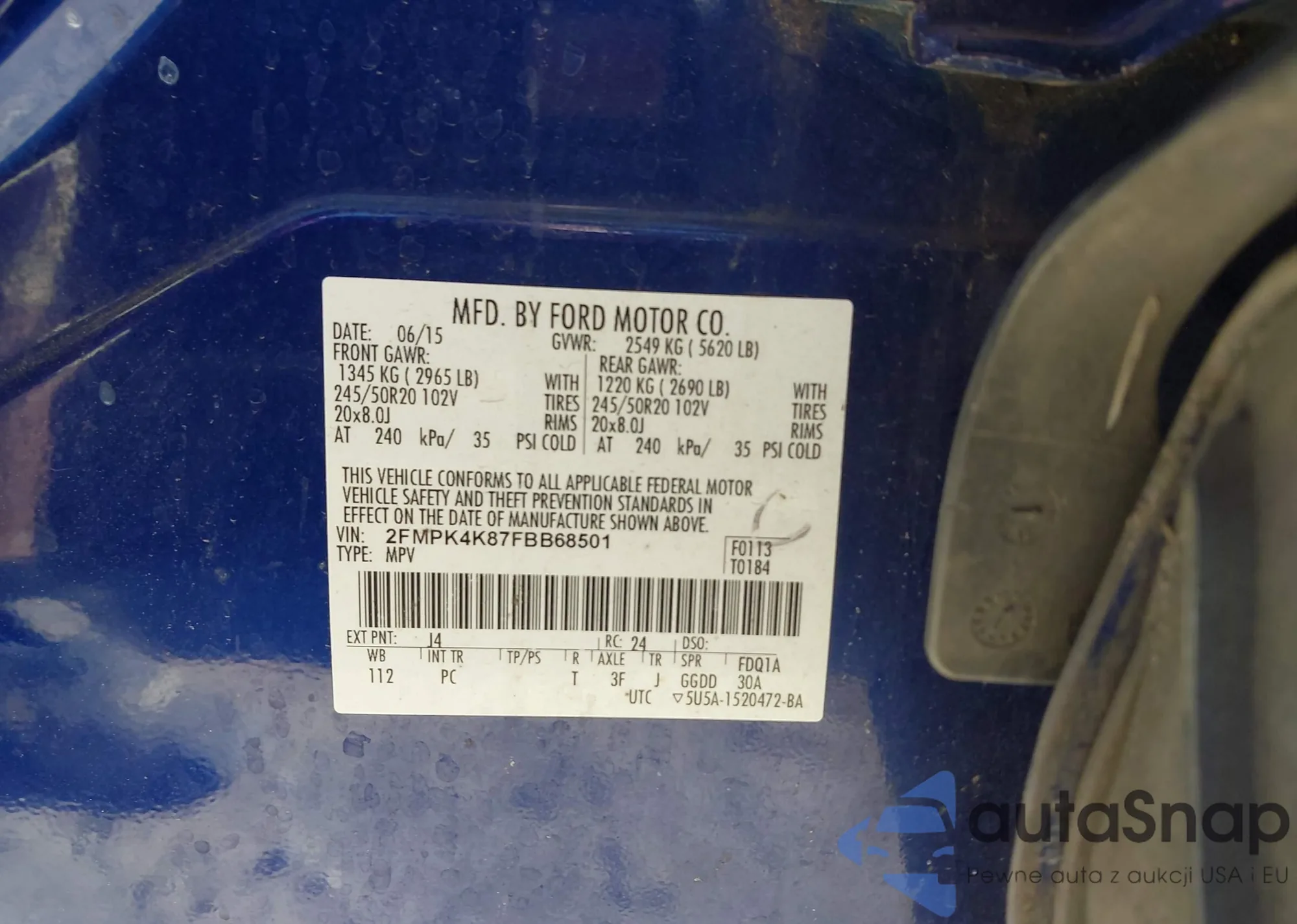 VIN: 2FMPK4K87FBB68501