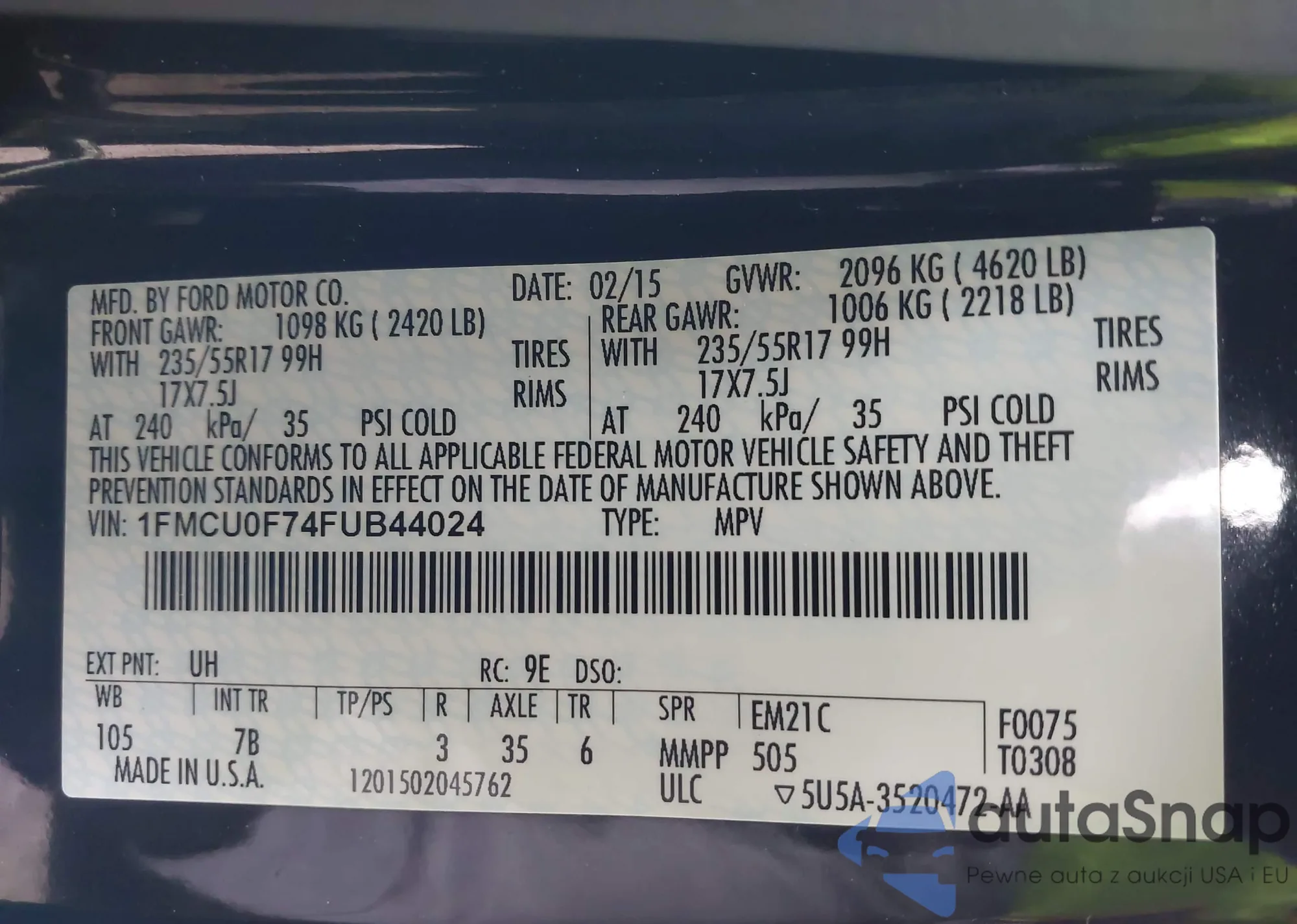 VIN: 1FMCU0F74FUB44024