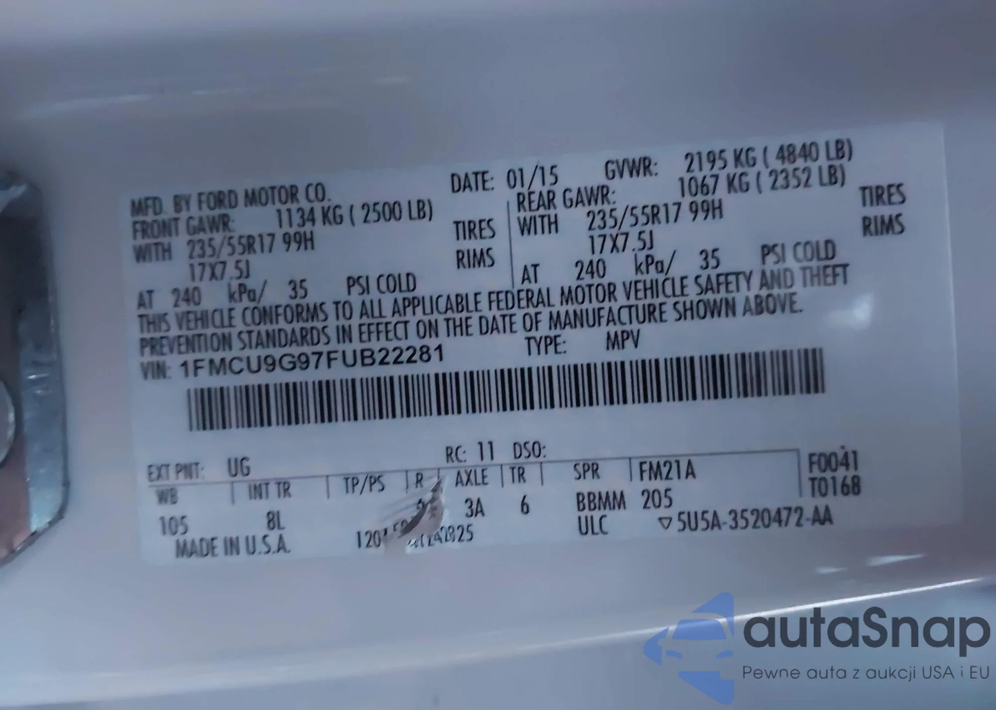 VIN: 1FMCU9G97FUB22281