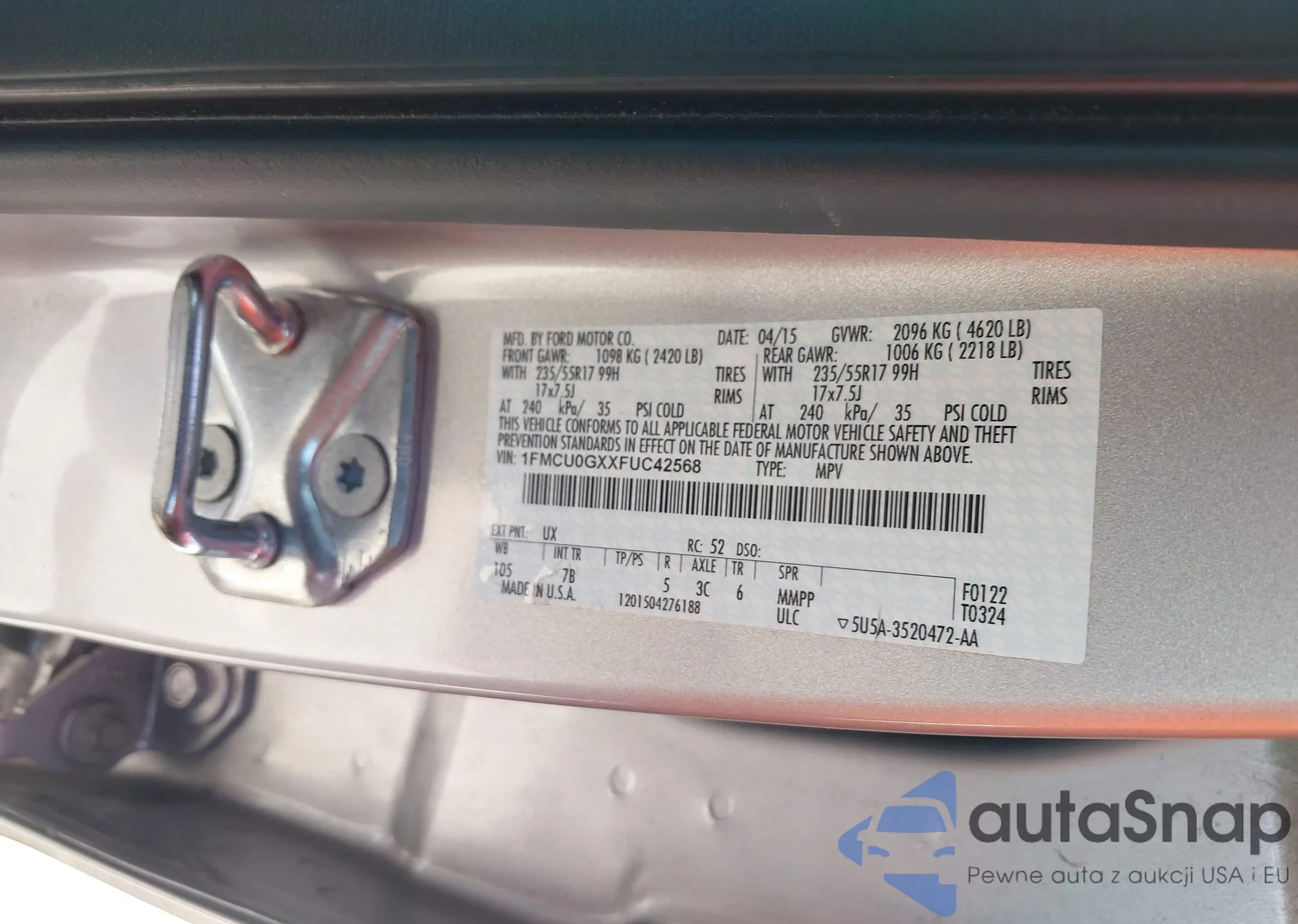 Samochód Ford Escape 2015 (VIN 1FMCU0GXXFUC42568) nie był wcześniej licytowany. Dokumenty są czyste, przebieg odpowiada lub jest niższy niż średnia rynku. Sprzedaje go firma ubezpieczeniowa – polecamy zakup. Dostawa do portu zajmie ok. 6–8 tygodni.