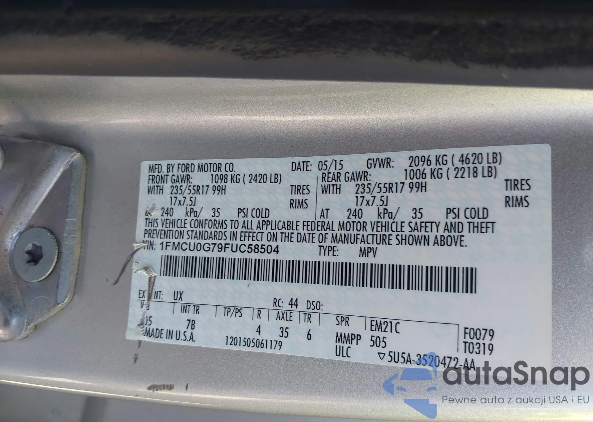 VIN: 1FMCU0G79FUC58504