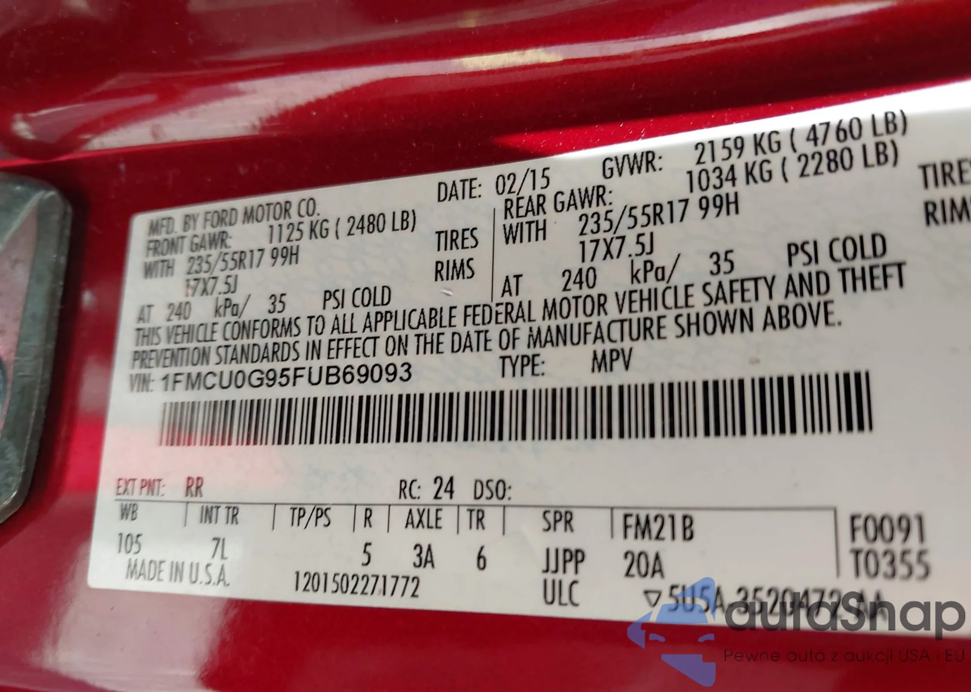 • VIN: 1FMCU0G95FUB69093
