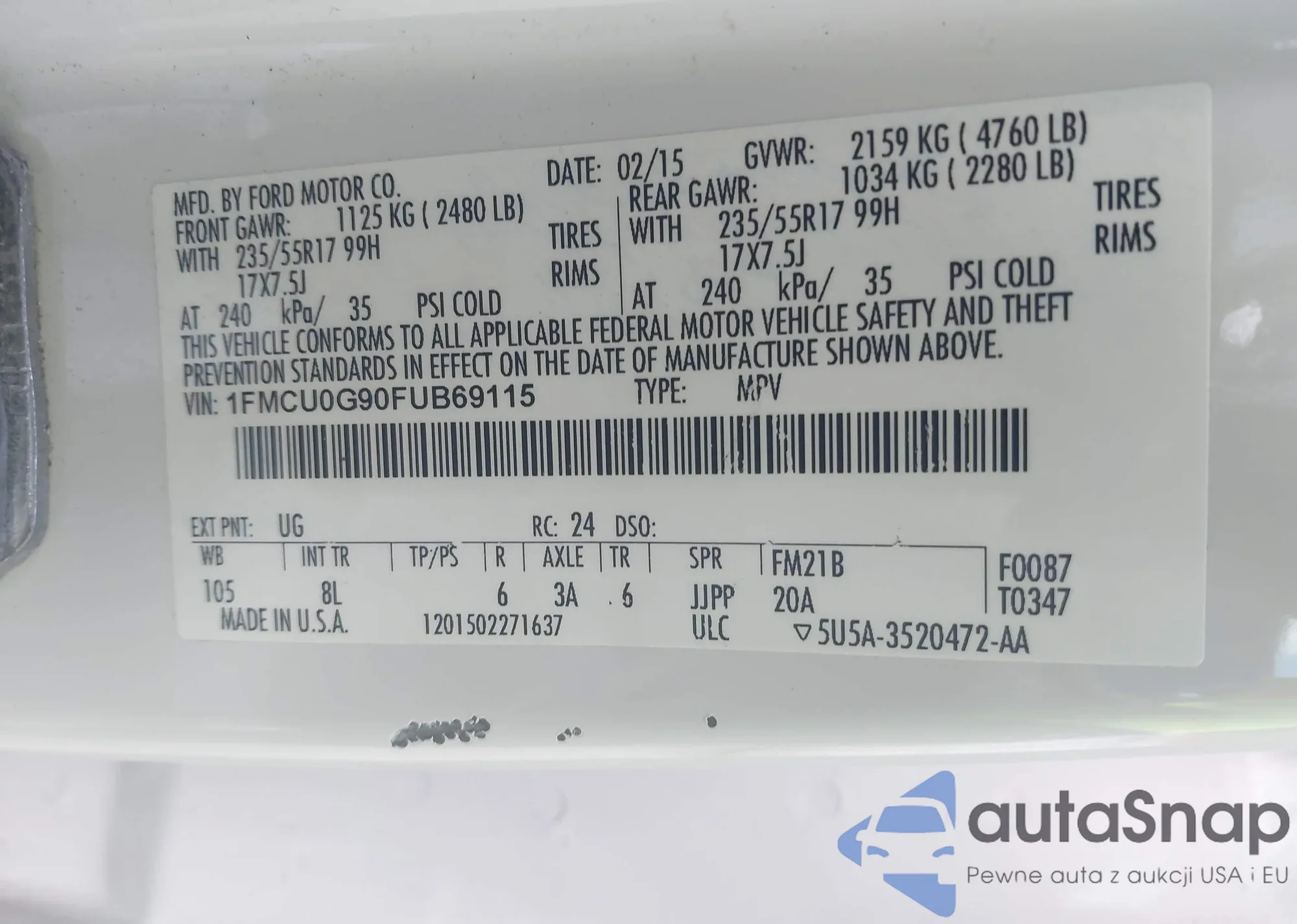 VIN: 1FMCU0G90FUB69115