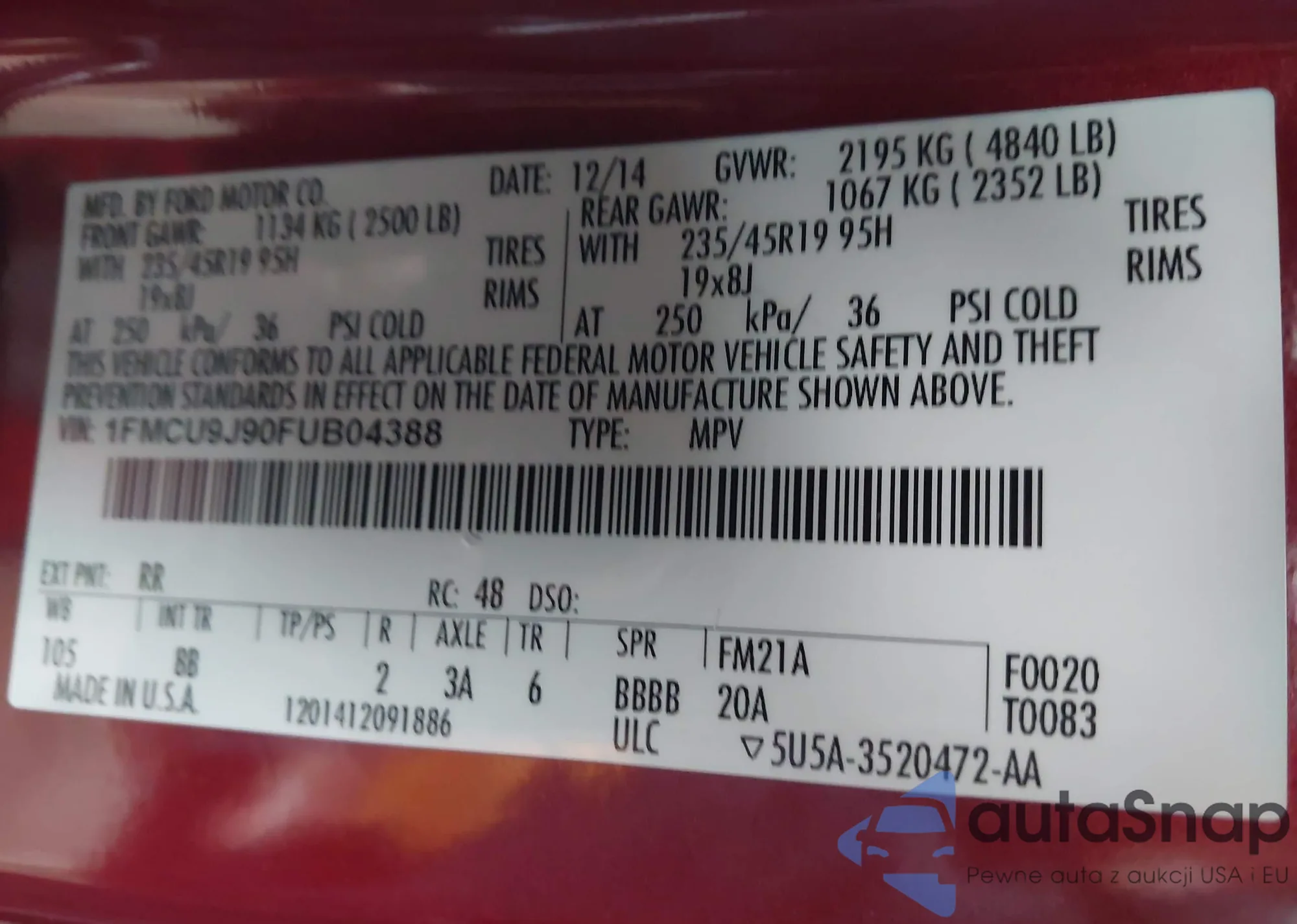 VIN: 1FMCU9J90FUB04388