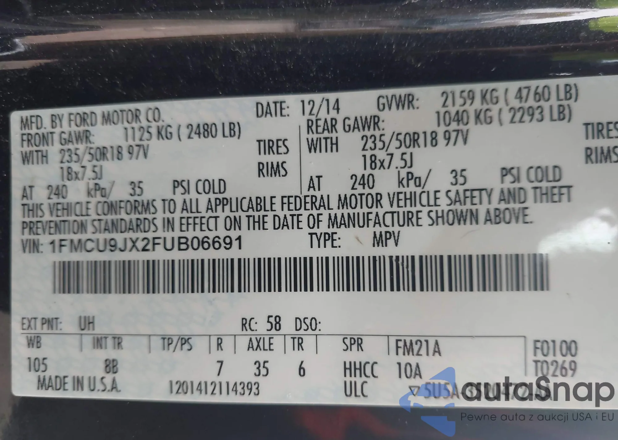 VIN: 1FMCU9JX2FUB06691