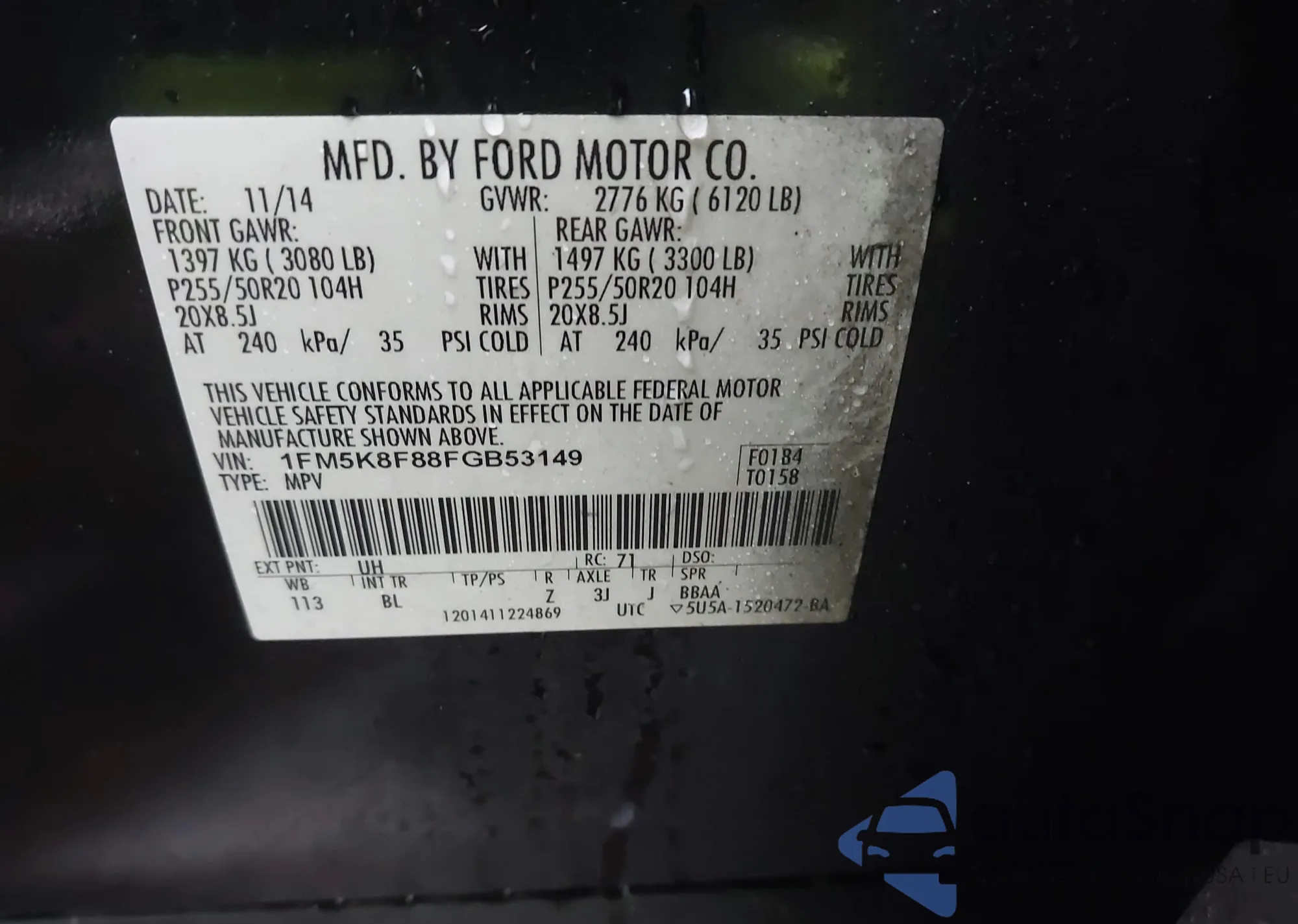 VIN: 1FM5K8F88FGB53149