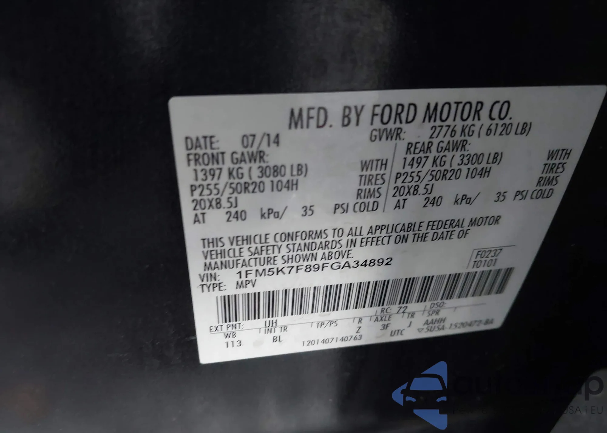 VIN: 1FM5K7F89FGA34892