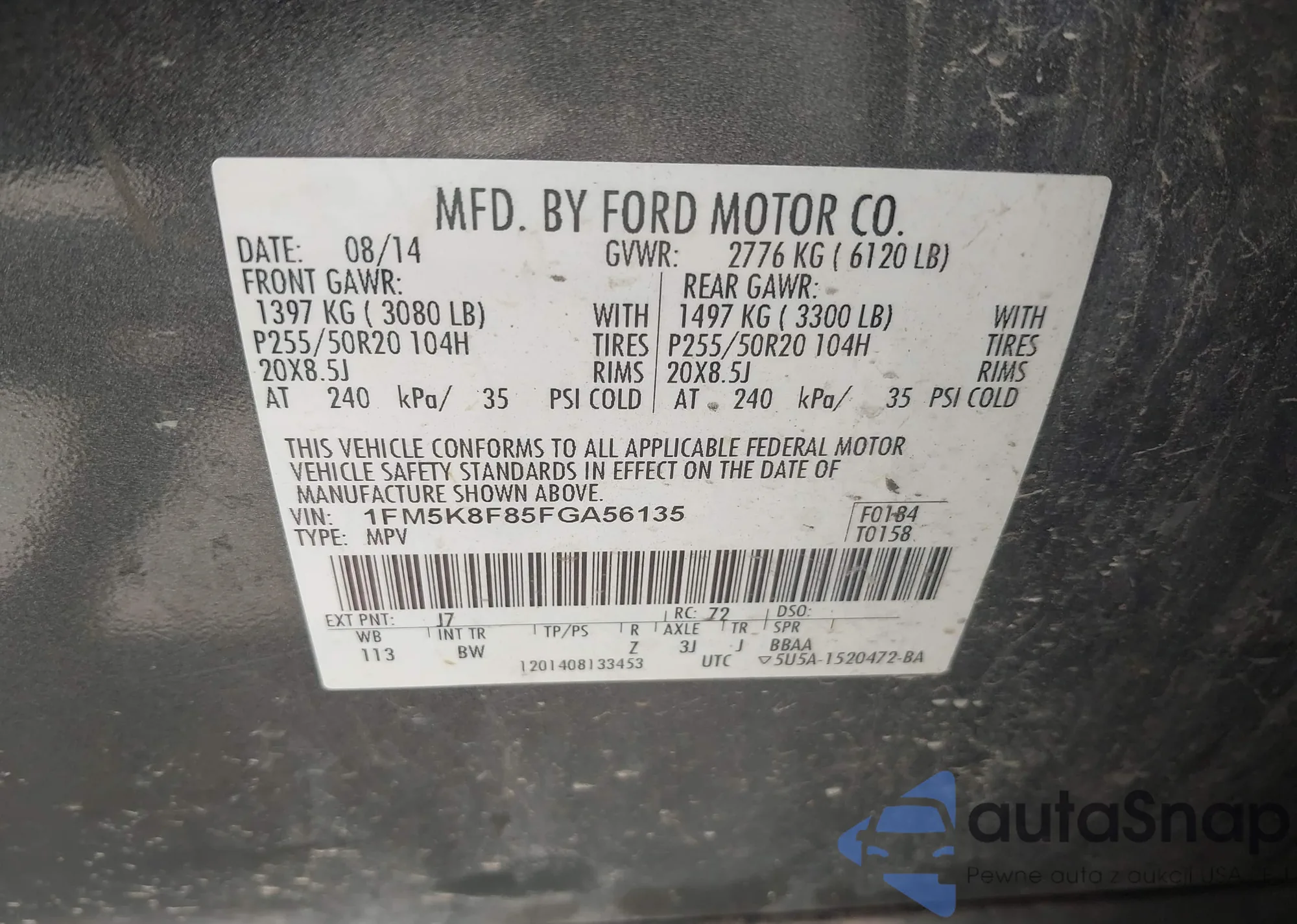 VIN: 1FM5K8F85FGA56135