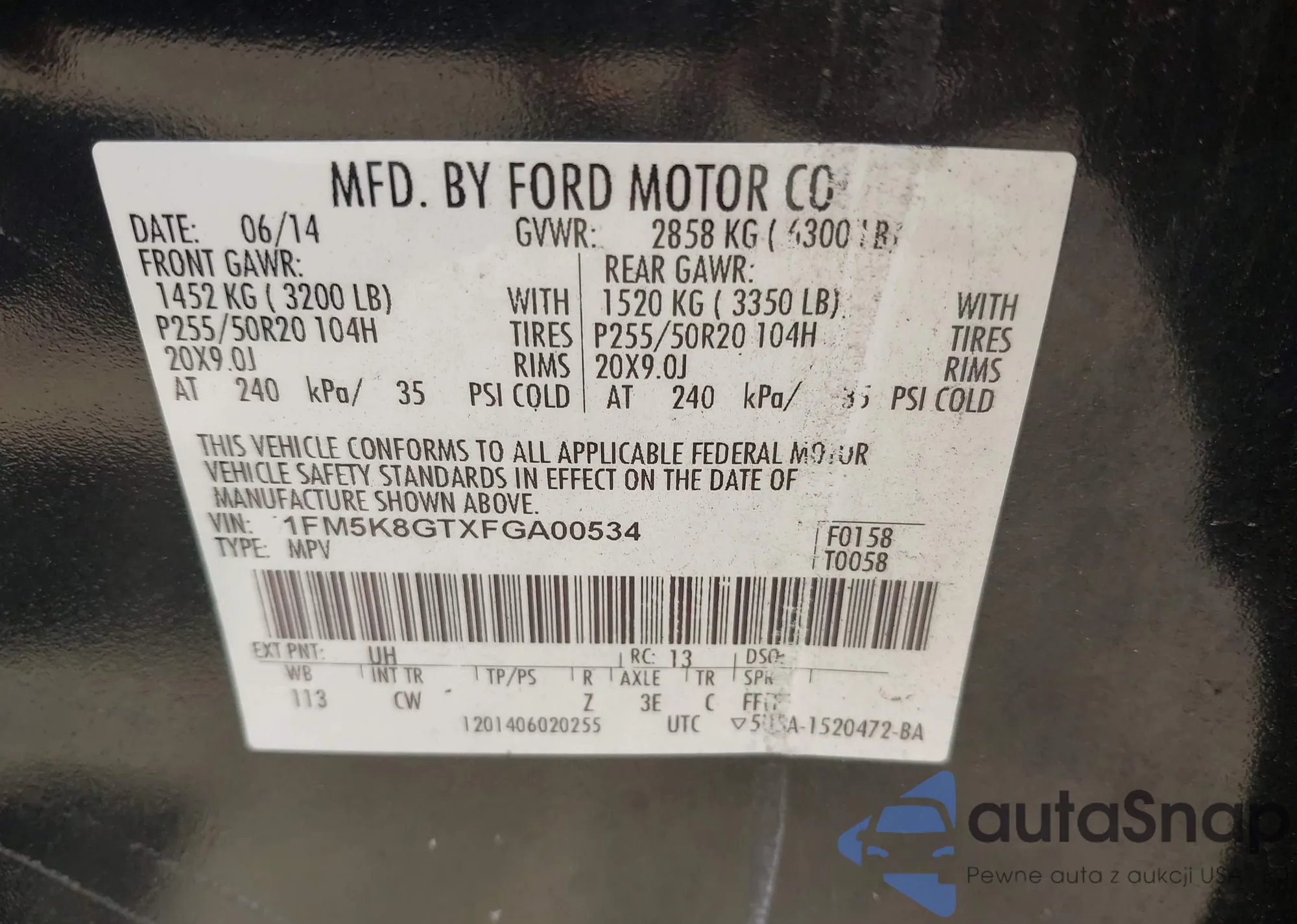 VIN: 1FM5K8GTXFGA00534