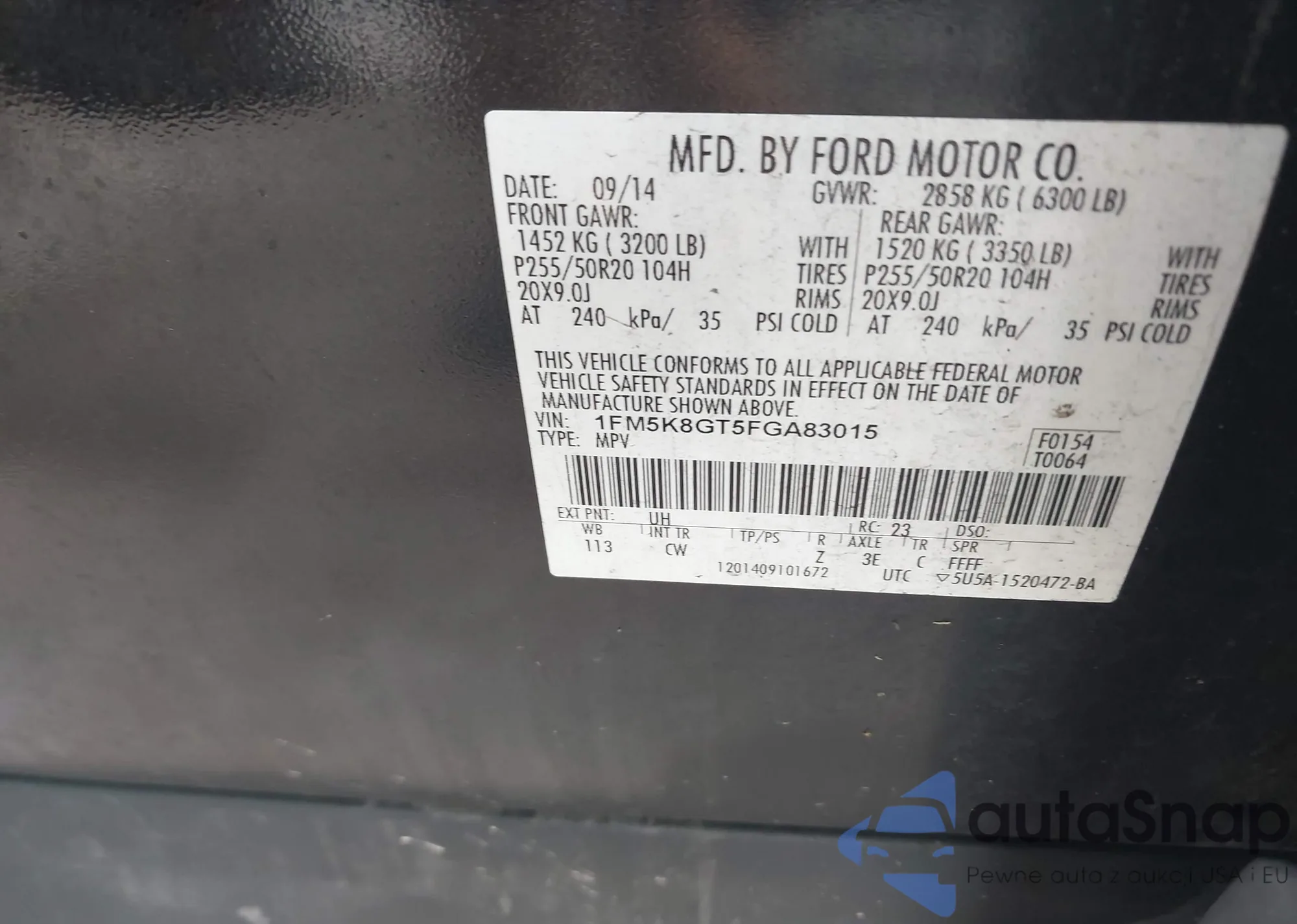 VIN: 1FM5K8GT5FGA83015