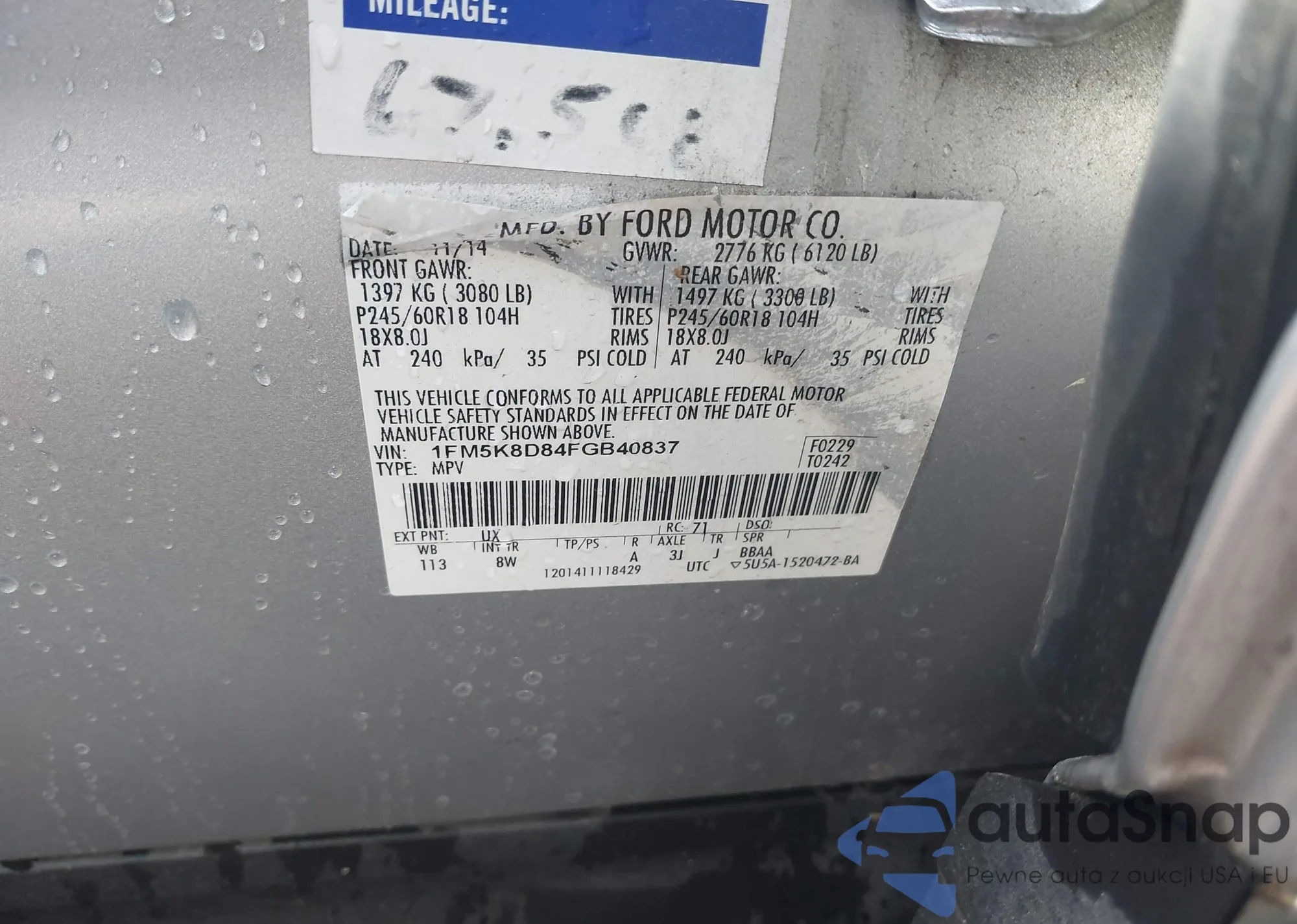 Samochód Ford Explorer 2015 (VIN 1FM5K8D84FGB40837) nie był wcześniej licytowany. Dokumenty są czyste, przebieg odpowiada lub jest niższy niż średnia rynku. Sprzedaje go firma ubezpieczeniowa – polecamy zakup. Dostawa do portu zajmie ok. 6–8 tygodni.