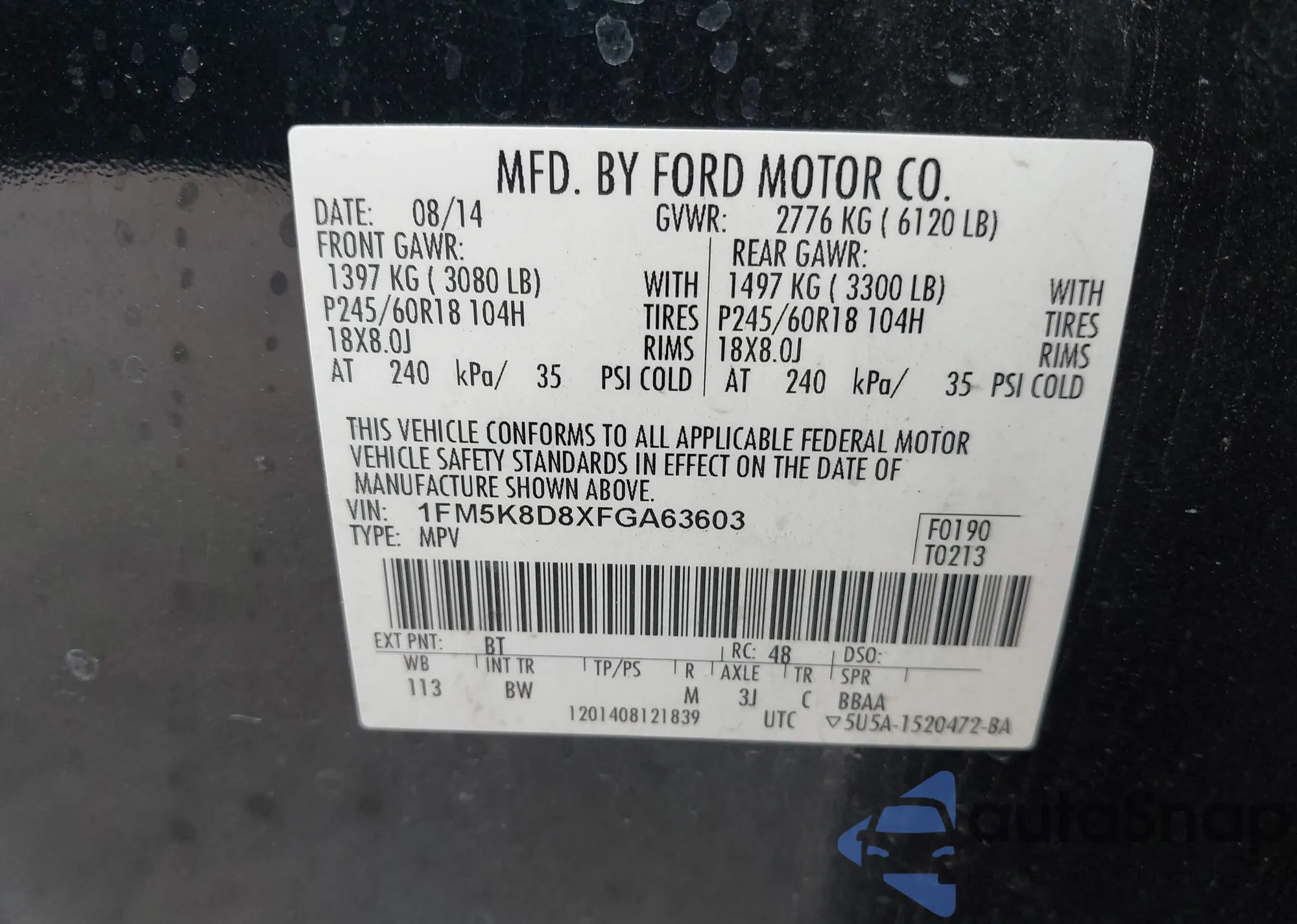 VIN: 1FM5K8D8XFGA63603