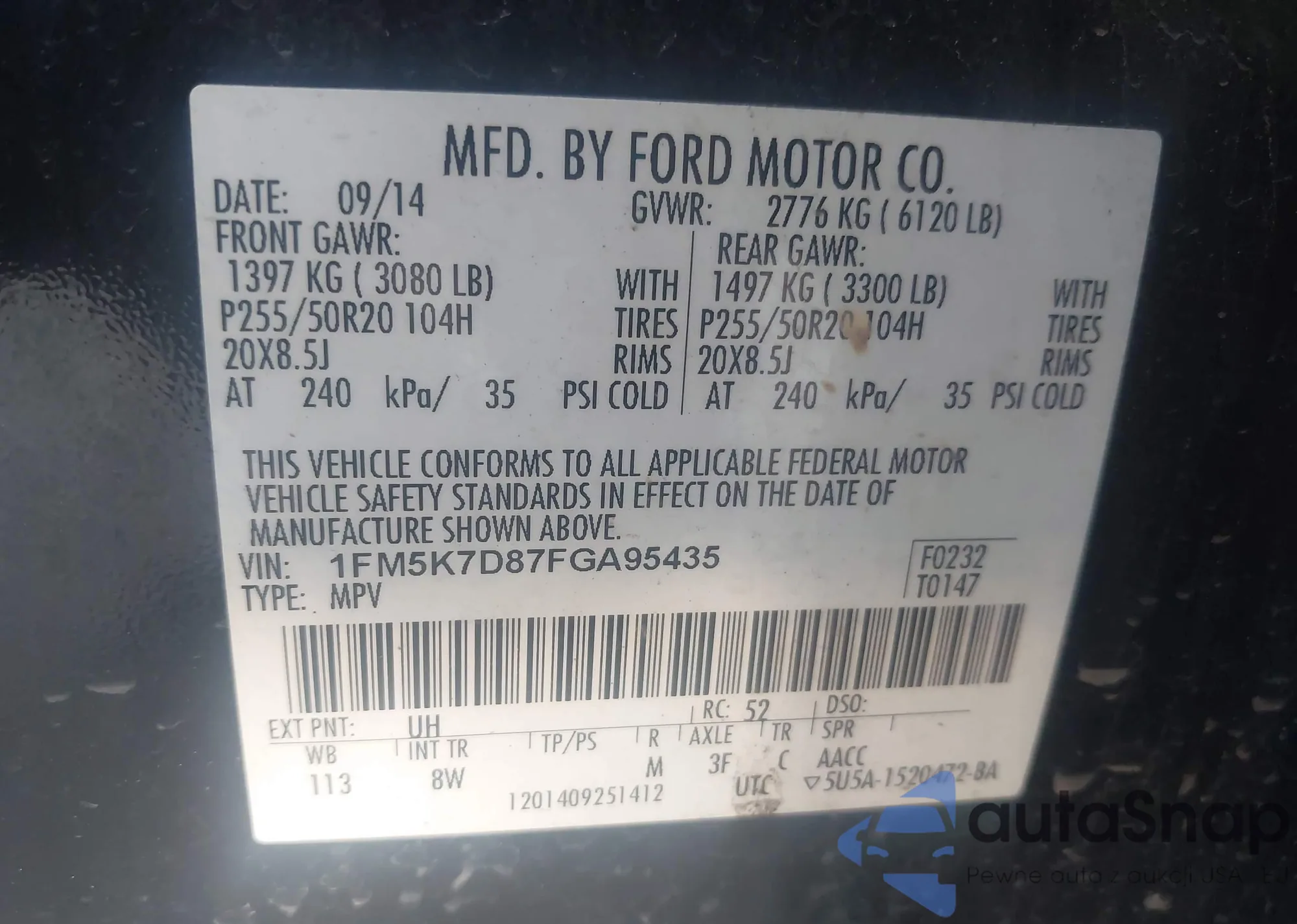 VIN: 1FM5K7D87FGA95435