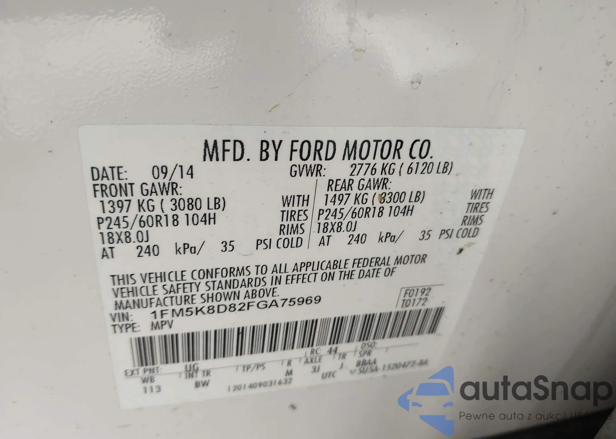 VIN: 1FM5K8D82FGA75969