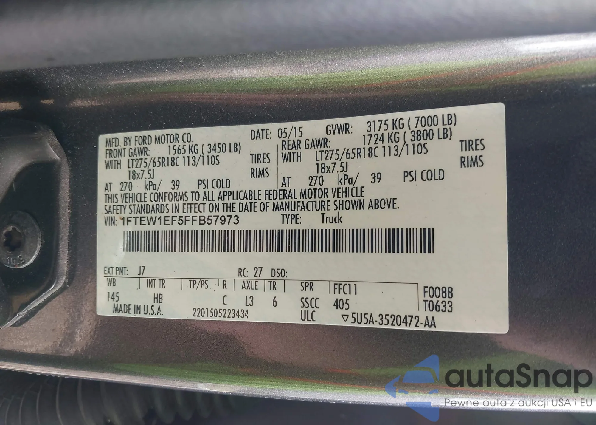 • VIN: 1FTEW1EF5FFB57973