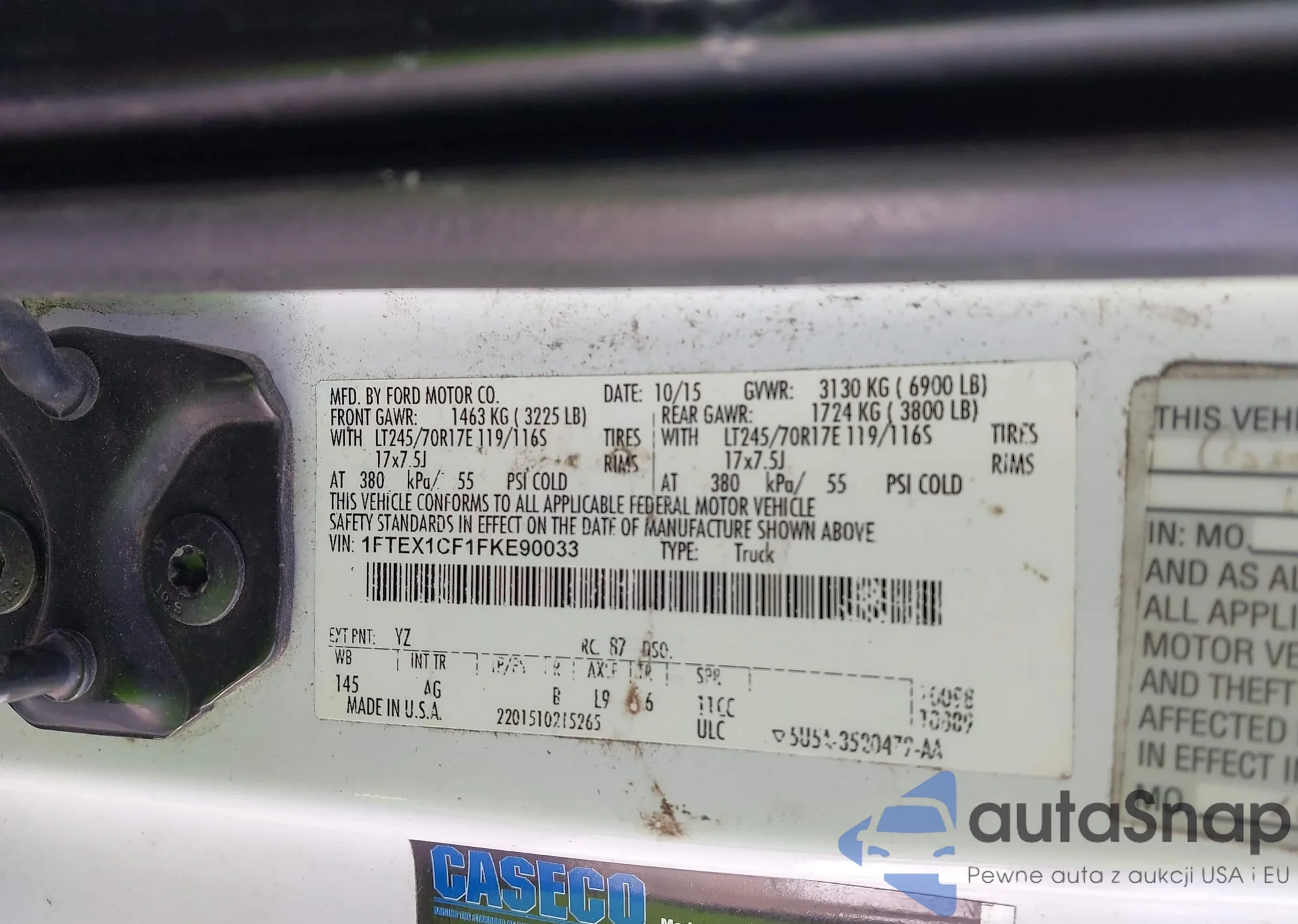Samochód Ford F-150 2015 (VIN 1FTEX1CF1FKE90033) nie był wcześniej licytowany. Dokumenty są czyste, przebieg odpowiada lub jest niższy niż średnia rynku. Sprzedaje go firma ubezpieczeniowa – polecamy zakup. Dostawa do portu zajmie ok. 6–8 tygodni.