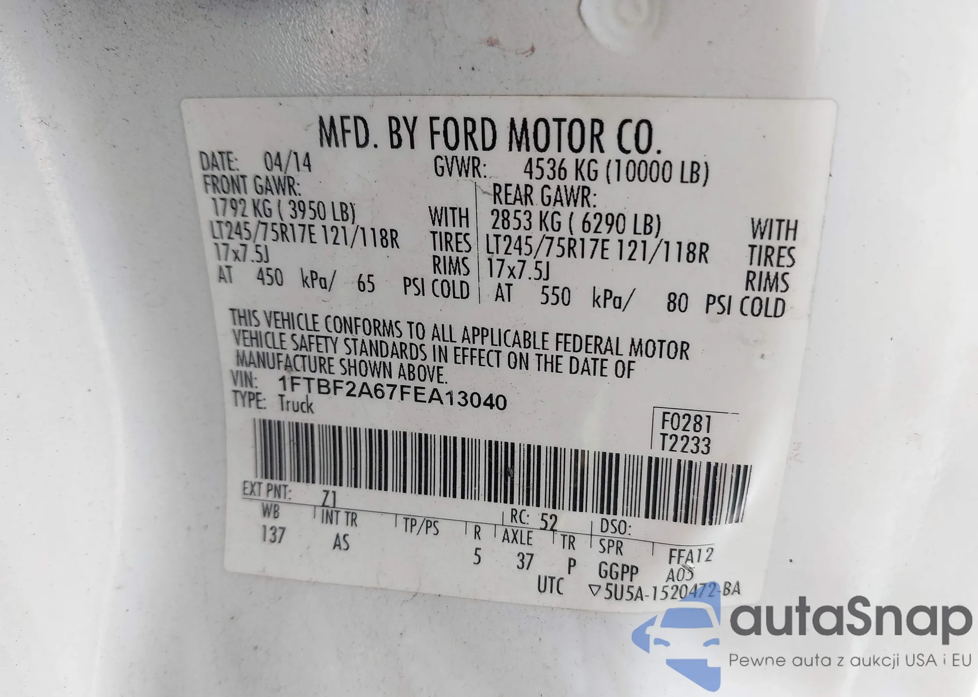 VIN: 1FTBF2A67FEA13040