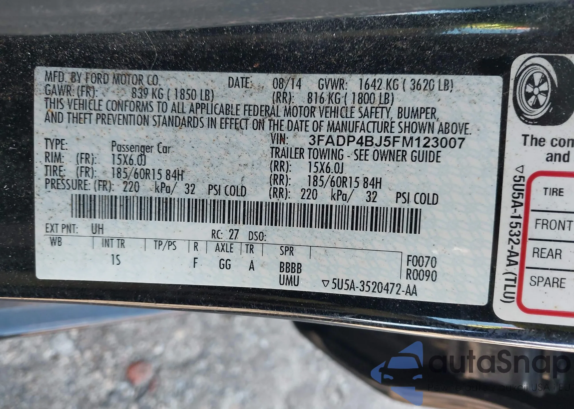 Samochód Ford Fiesta 2015 (VIN 3FADP4BJ5FM123007) nie był wcześniej licytowany. Dokumenty są czyste, przebieg odpowiada lub jest niższy niż średnia rynku. Sprzedaje go firma ubezpieczeniowa – polecamy zakup. Dostawa do portu zajmie ok. 6–8 tygodni.