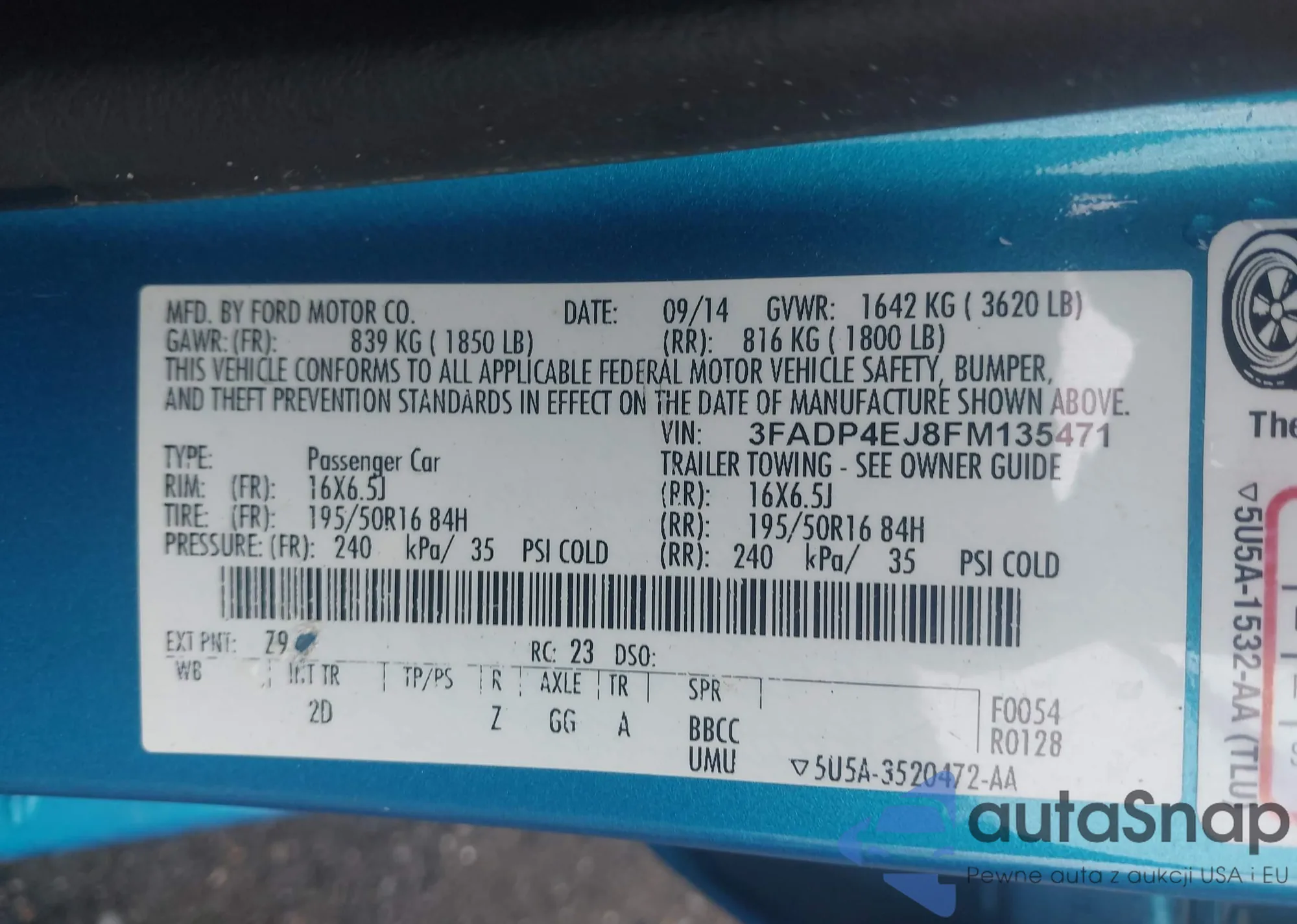 Samochód Ford Fiesta 2015 (VIN 3FADP4EJ8FM135471) nie był wcześniej licytowany. Dokumenty są czyste, przebieg odpowiada lub jest niższy niż średnia rynku. Sprzedaje go firma ubezpieczeniowa – polecamy zakup. Dostawa do portu zajmie ok. 6–8 tygodni.